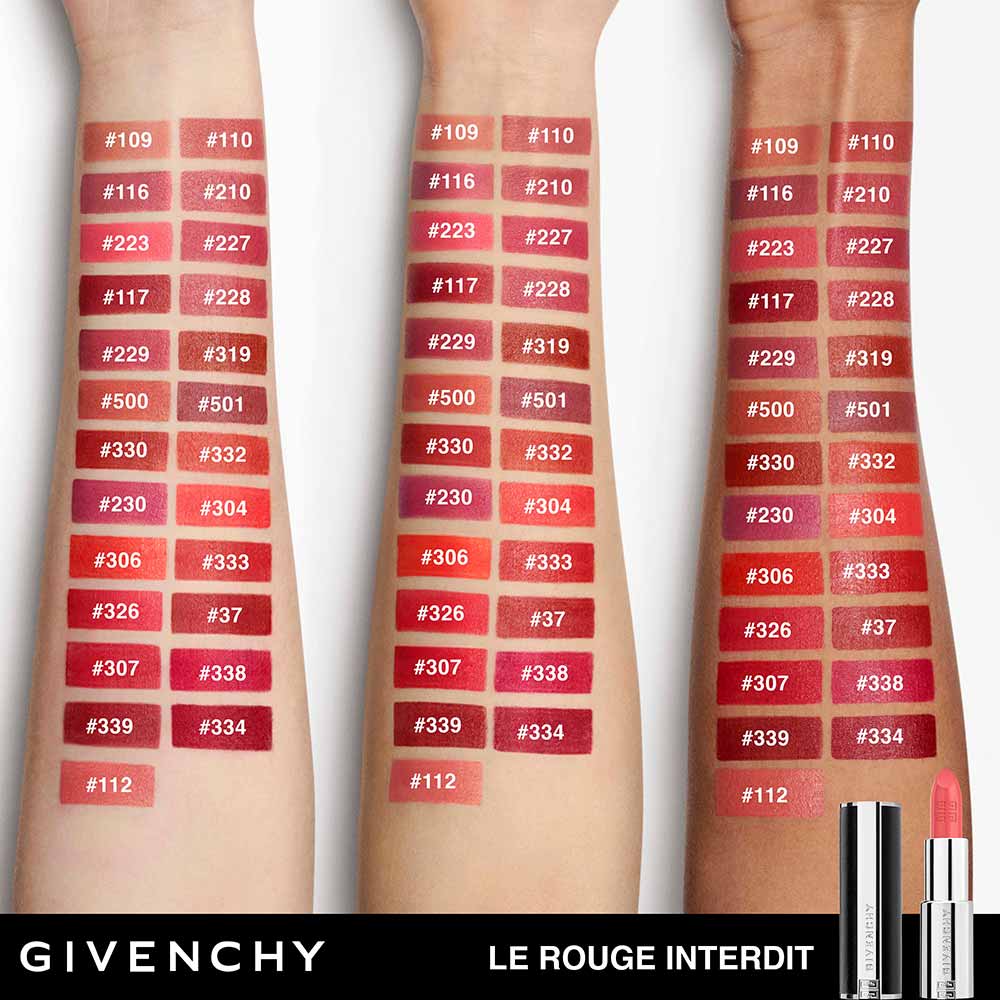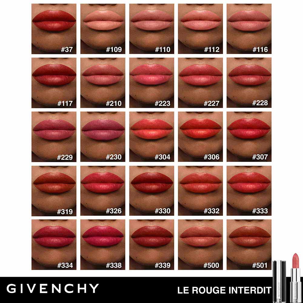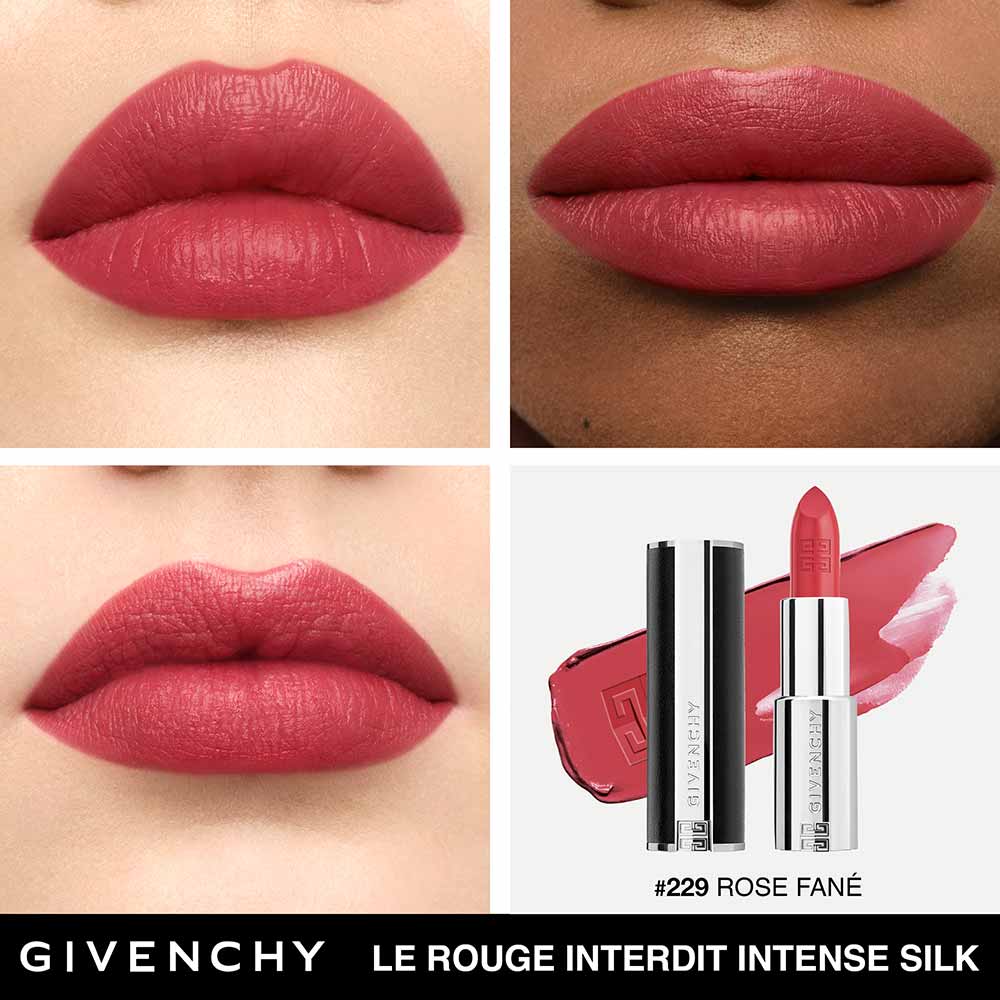 Com uma nova fórmula, Givenchy Le Rouge Interdit Intense Silk combina cores luminosas com acabamento sedoso e máximo conforto.