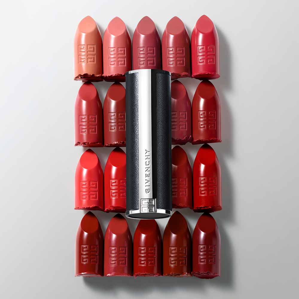 Com um estojo de couro genuíno Givenchy - que também pode ser refilado (3 tons) - Le Rouge Interdit Intense Silk é a menor peça de alta costura. Disponível em 12 tons altamente pigmentados, abrangendo os vermelhos mais modernos e icônicos.
