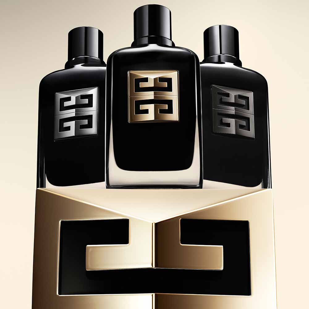 O design inspirado na alta costura do Eau de Parfum revisita o icônico frasco de Givenchy Gentleman com pura elegância. Como uma crista, uma monograma 4G reinterpretado em metal prateado reluzente adorna o acabamento laqueado preto.
