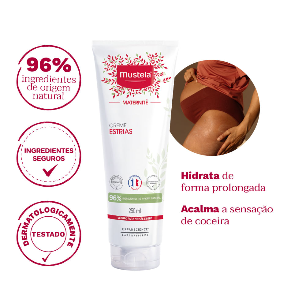 Mustela Creme Estrias Ação 3 em 1 foi especificamente formulado para prevenir o aparecimento de estrias na gravidez e após o parto:
