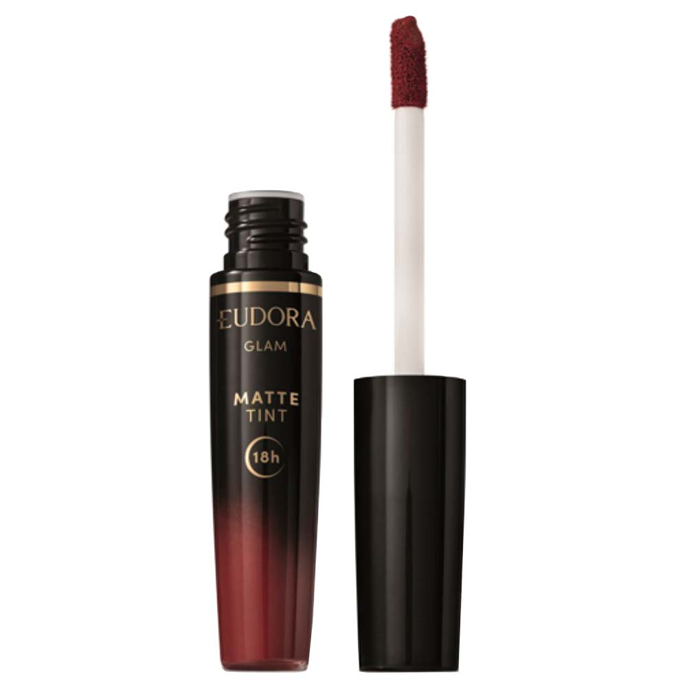 Que tal um não ter necessidade de retocar o batom durante a correria do dia a dia? Eudora Glam Matte Tint Batom Líquido Mate de 18h de duração, agora com uma nova embalagem e ativo de tratamento Nano Cápsula de Hialurônico. Acabamento mate altamente pigmentado e com cores intensas desde a primeira aplicação. Longa duração e super resistente, não transfere e não borra. Benefícios: • 18h de duração; • Não transfere e não borra. Modo de usar: Antes de usar certifique-se que seus lábios estão bem cuidados e sem nenhum produto. Aplique uma camada fina do batom e espere secar completamente, sem friccionar os lábios durante a secagem. Por conta da sua tecnologia exclusiva de longa duração, esse batom tem um tempo de secagem superior a outros batons líquidos. Importante: O tempo de secagem do batom líquido nos lábios pode variar de lábio para lábio. Sobre a marca: Os melhores produtos de maquiagem e com qualidade impecável. É assim que Eudora GLAM pode ser definida. Uma linha completa de make, GLAM carrega a essência de Eudora em cada um de seus itens: sofisticação, tecnologia e glamour nos mínimos detalhes.
