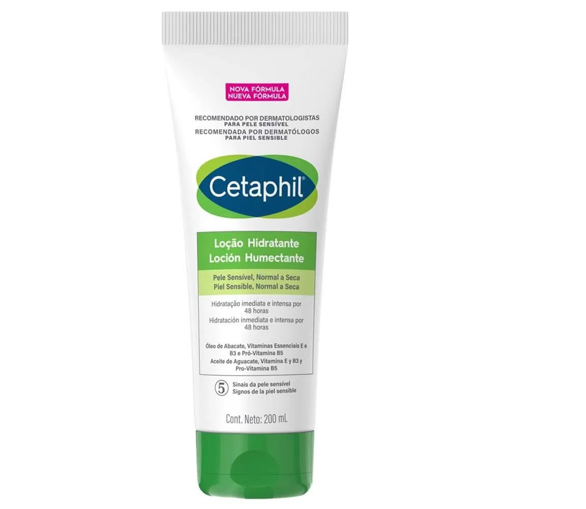 Cetaphil Loção Hidratante é ideal para pele normal a seca, pois possui formulação leve e não oleosa. Pode ser utilizado no rosto e corpo. Sua fórmula é enriquecida com emolientes e umectantes, que previnem a perda de umidade da pele, proporcionando mais de 96 horas de hidratação após a aplicação. Contém glicerina, dimeticona e óleo de macadâmia, que promovem hidratação e ajudam a repor lipídios do estrato córneo.