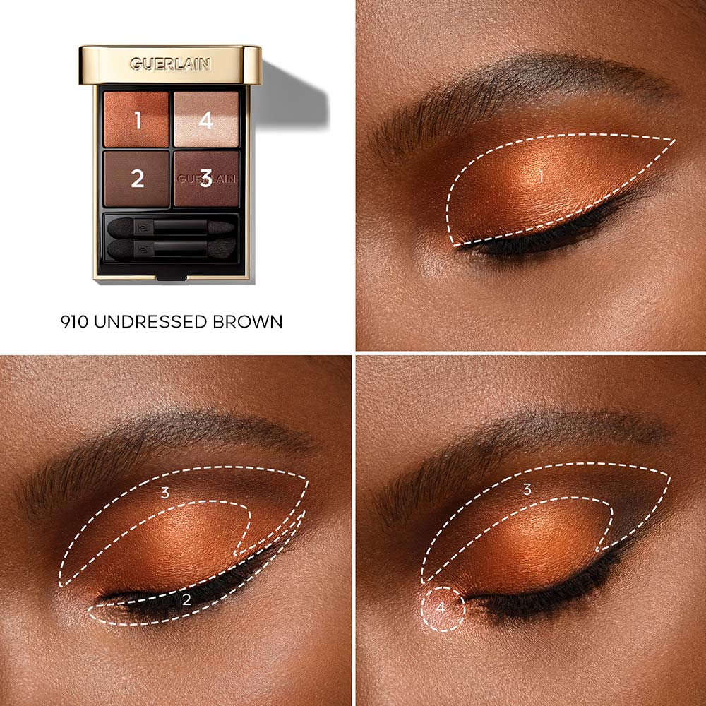 As sombras Ombres G são formuladas com pigmentos intensos para cores de longa duração, oferecendo profundidade inigualável. Os Ombres G adornam os olhos com 4 acabamentos diferentes: um cetim intenso, um mate profundo, um acabamento metálico luminoso e uma pérola radiante.