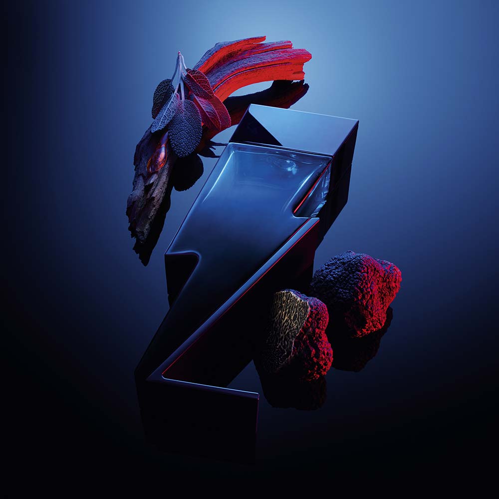 Apresentado em uma garrafa degradê fumegante, nas cores azul para preto queimado. Para reacender os seus sentidos!