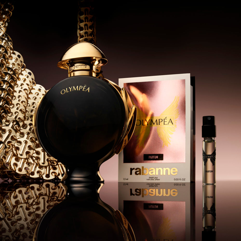 Deixe brilhar a sua aura divina com Olympéa de Rabanne: Um acorde luminoso com jasmim solar e baunilha misteriosa numa fragrância feminina hipnótica.