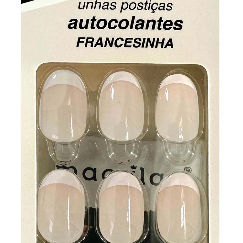 24 unhas postiças com adesivo autocolantes, 2 lenços umedecidos, 1 lixa e 1 palito.