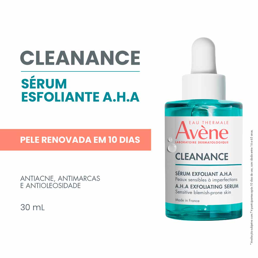 Para quem tem pele oleosa e/ou acneica e precisa de um tratamento eficaz, o Avène Cleanance Sérum Facial Esfoliante A.H.A é perfeito para reduzir marcas de acne, oleosidade e o tamanho dos poros, renovando a textura da pele.