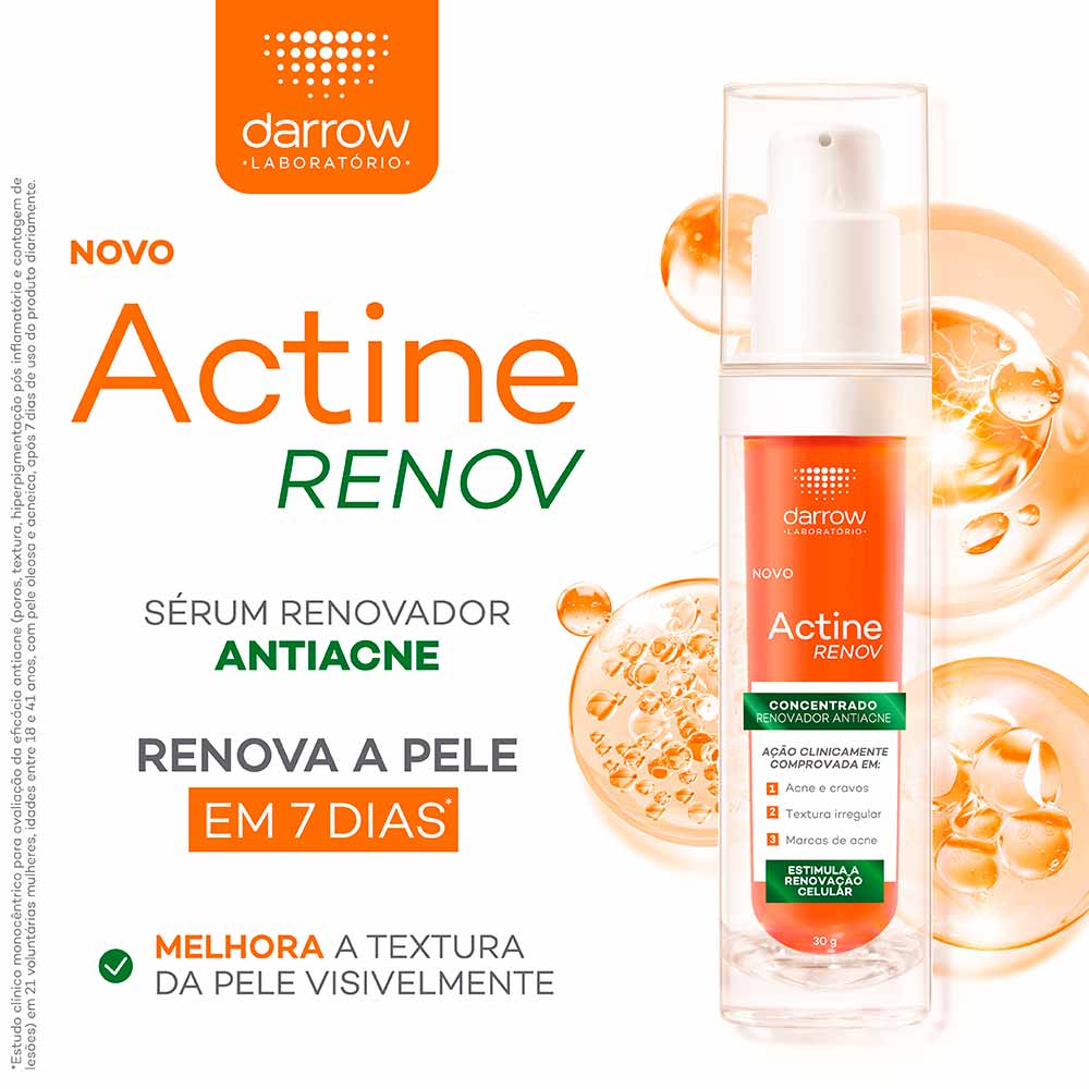 O Darrow Actine Renov Concentrado Renovador Antiacne é um concentrado renovador antiacne desenvolvido especialmente para peles oleosas a acneicas.