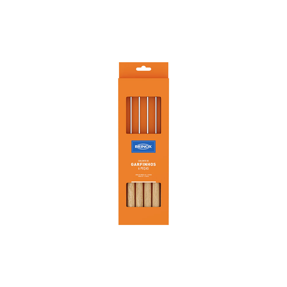 Conjunto Garfo para Fondue/Petisco 6 Peças Beli 23cm Madeira Brinox