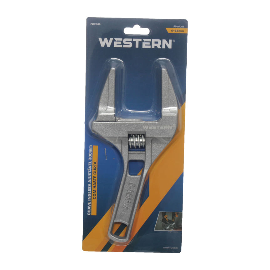 CHAVE INGLESA AJUSTÁVEL 6-68MM - Dimensões da Peça: 64,5 x 30 x 28cm (CxLxA) - Dimensões da Embalagem: 115 x 265mm - Tipo de Embalagem: Blister - Quantidade Inner: 6 - Dimensões Inner: 27,5 x 12 x 12,5cm (CxLxA) - Quantidade Master: 60 - Dimensões Master: 64,5 x 30 x 26cm (CxLxA) - Material: Alumínio e Aço carbono - Marca: Western - Cor: Prata - Origem: China - Contém: 1 unidade - Características: • Chave Inglesa Ajustável de 300mm. - Antes do uso: • Verificar se o produto está em perfeitas condições de uso ou instalação. - Perigos: • Cuidado durante o manuseio do produto para evitar acidentes. - Cuidados: • Utilize equipamento de proteção individual. Necessário ao trabalho (Óculos de proteção, botas, etc). - Advertência/Atenção: • Trabalhe seguro. - Sac Fornecedor: • Sac: 0800 607 1322 • Email: posvendas@etilux.com.br • Site: www.etilux.com.br - Garantia: • Em condições normais de uso, este produto tem garantia de 90 dias contra defeitos de material e fabricação, mediante apresentação da nota fiscal de compra. Má conservação, manuseio inadequado, quedas ou quaisquer outras avarias produzidas pelo uso incorreto, a garantia oferecida perde a validade.