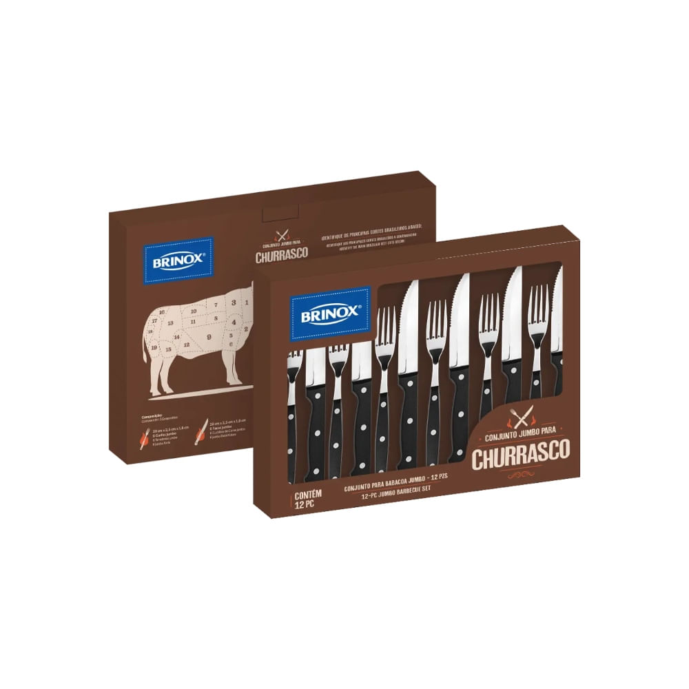 Conjunto de Talheres Jumbo para Churrasco 12 Peças BRINOX 3,2x26,1x35,6