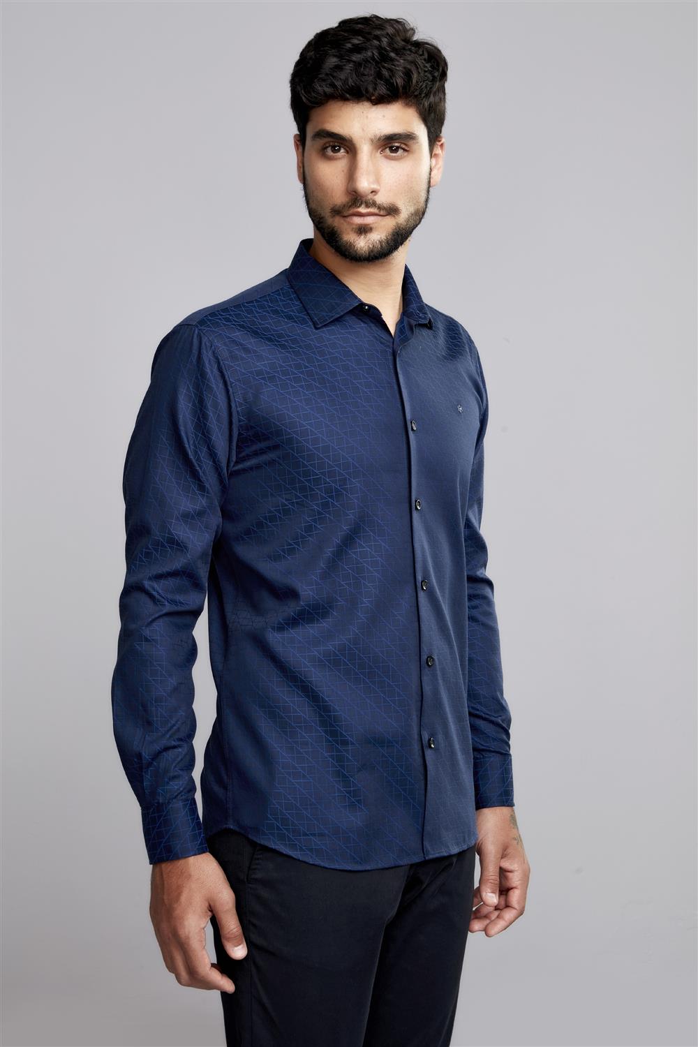 Camisa Manga Longa Comfort Jacquard - Azul