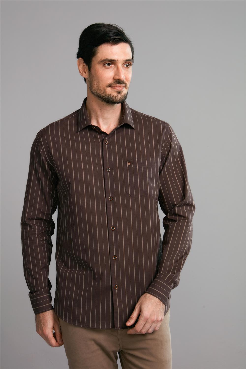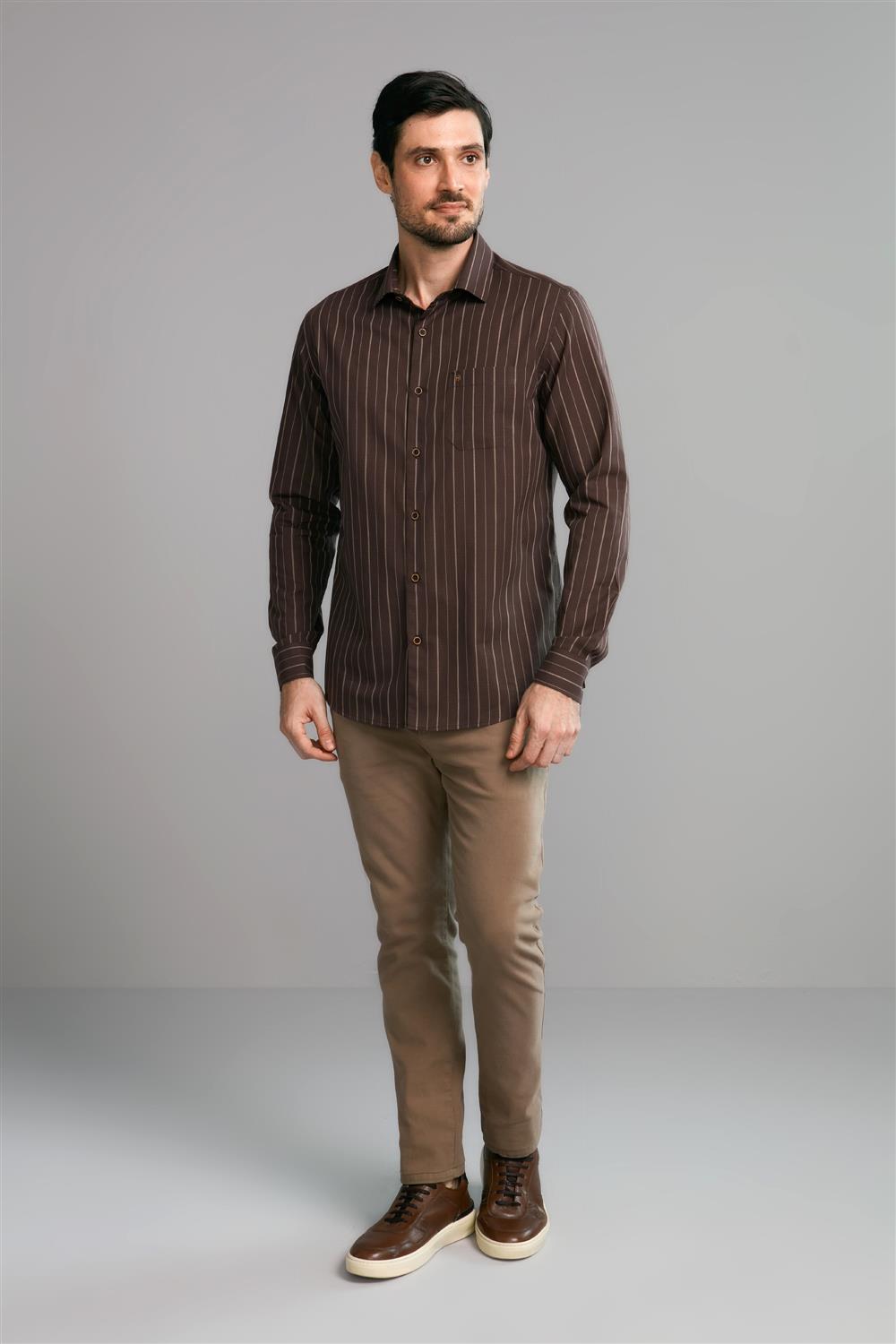 Camisa Manga Longa com Bolso Jacquard Classic Fit - Marrom