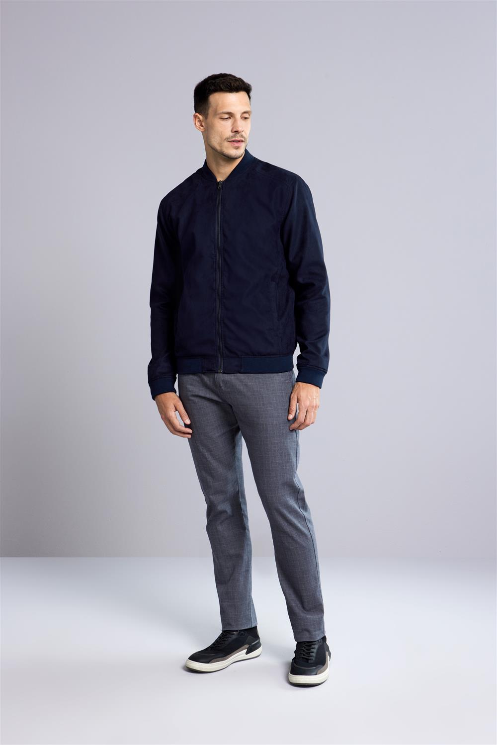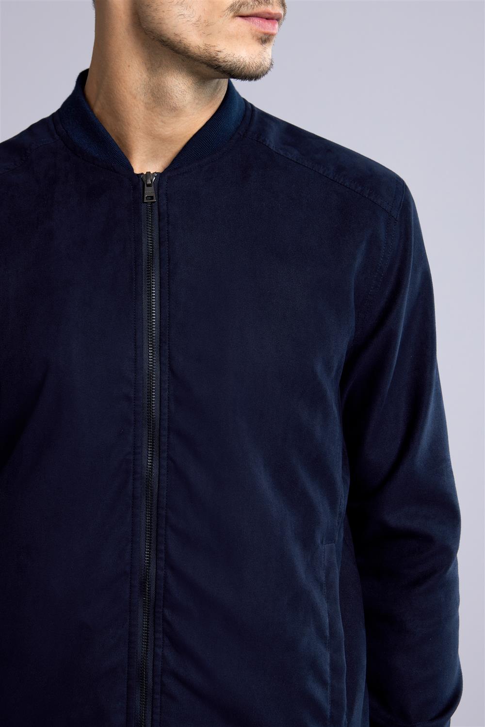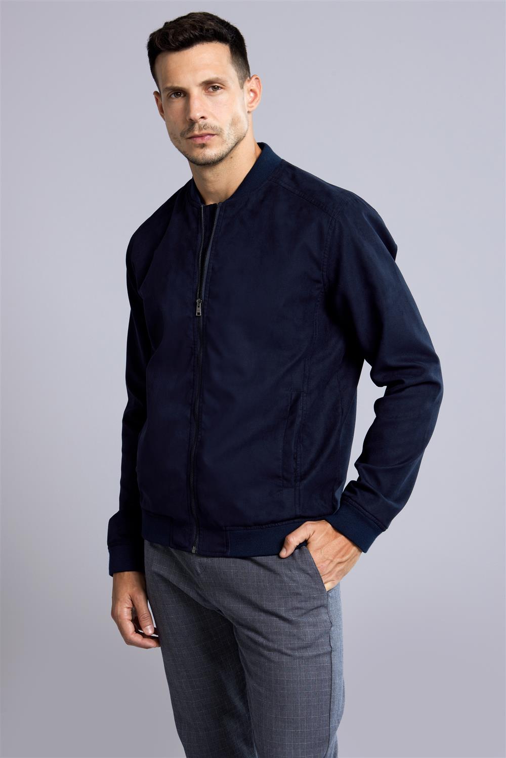 Jaqueta Bomber com Zíper Suede - Azul Marinho