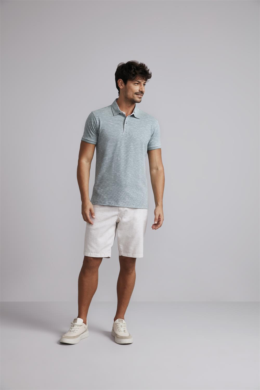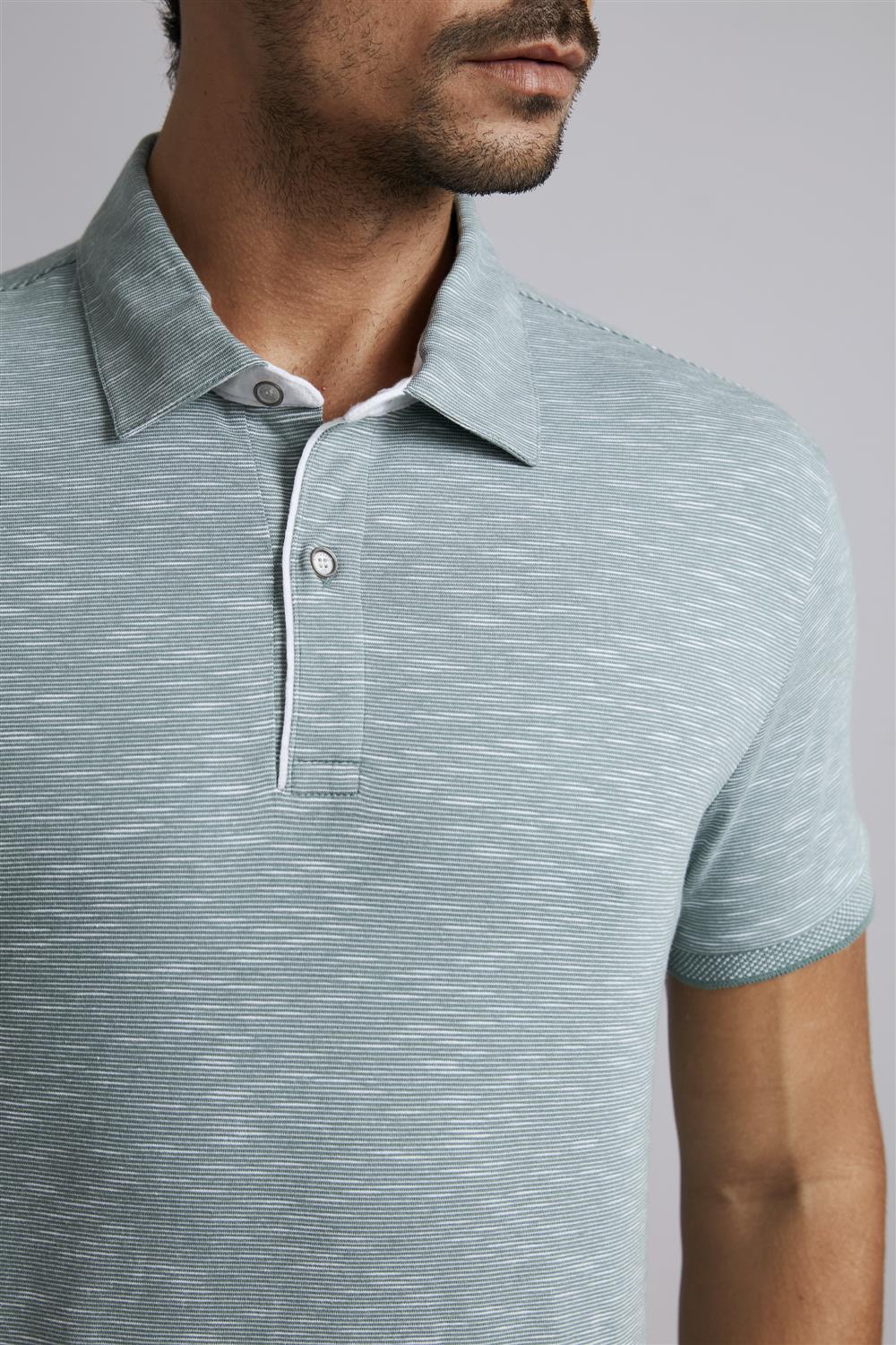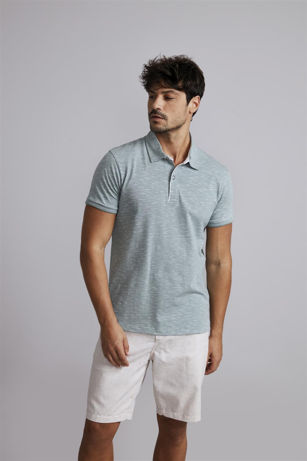 Camisa Polo Malha Slim Fit - Verde Malva / Branco