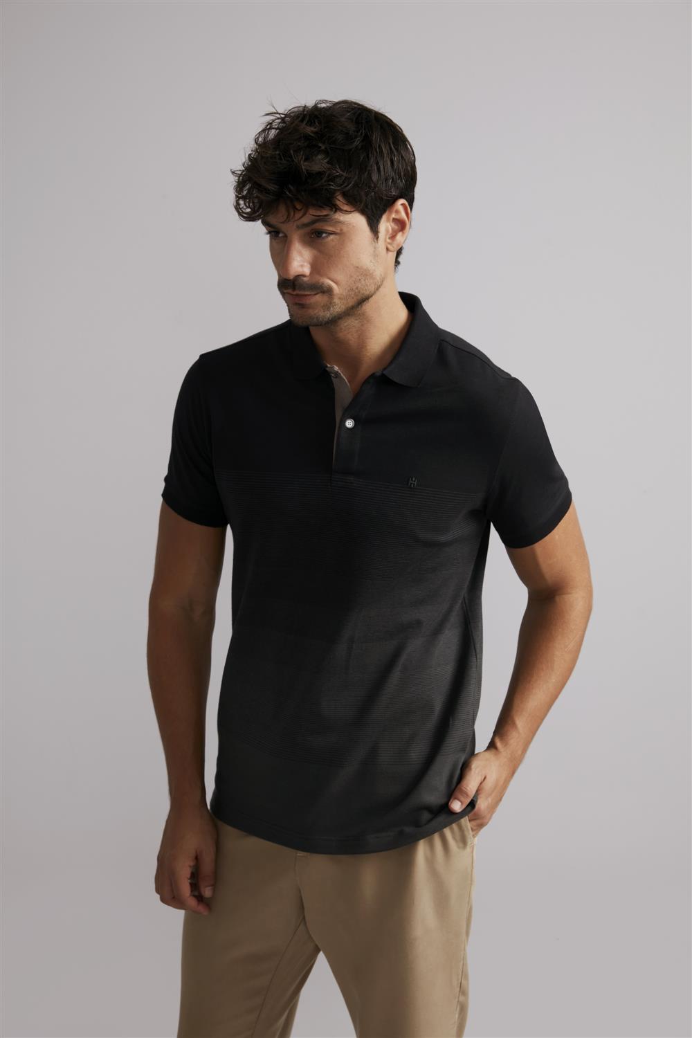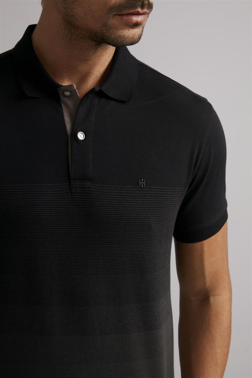 Camisa Polo Malha Slim Fit - Preto / Cinza Chumbo