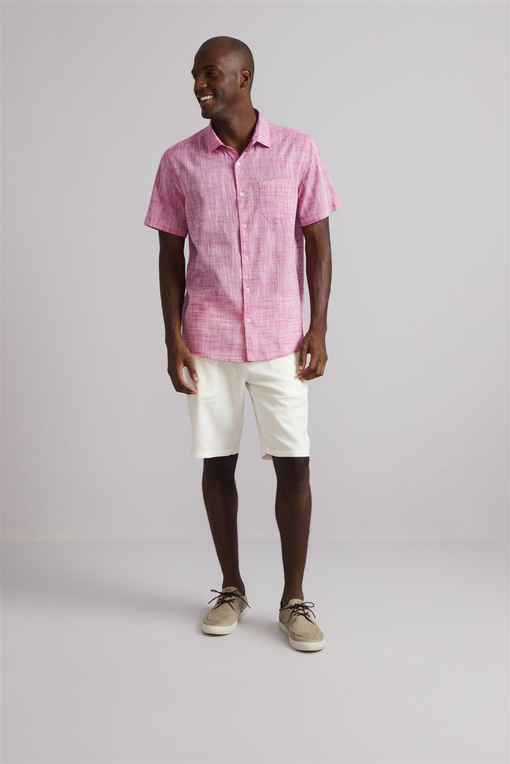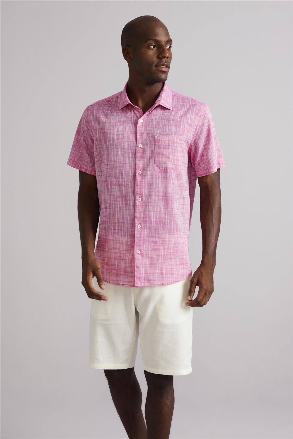 Camisa Manga Curta com Bolso Comfort - Rosa Escuro