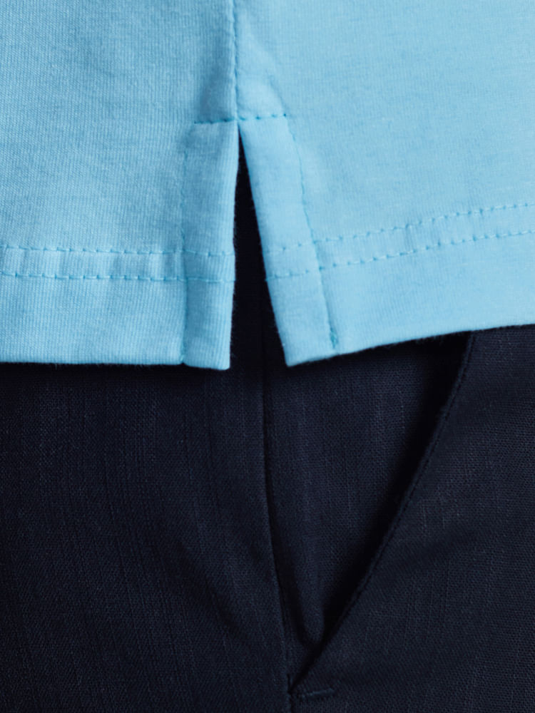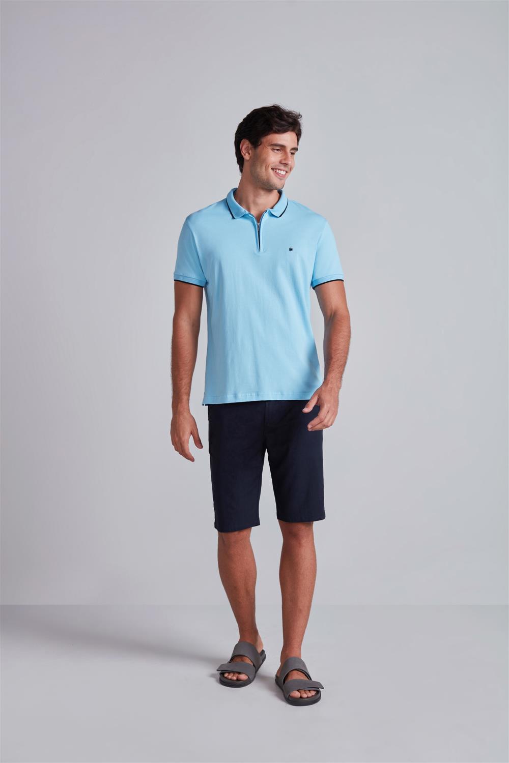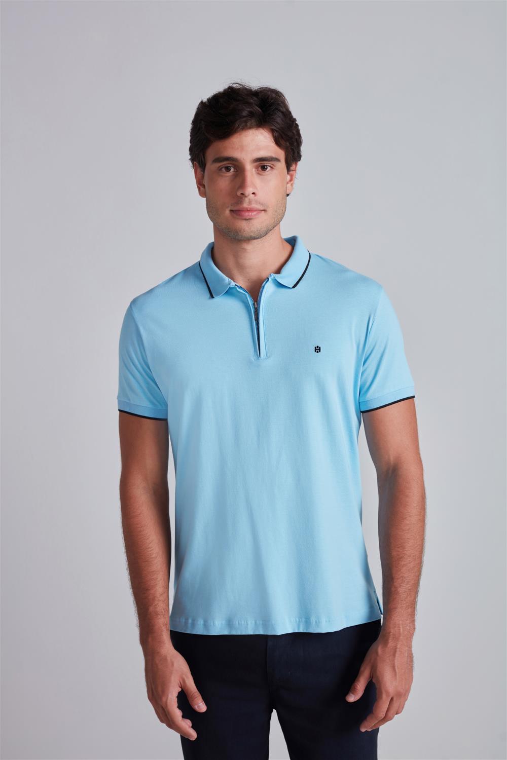 Polo Manga Curta com Zíper Slim Fit - Azul Piscina