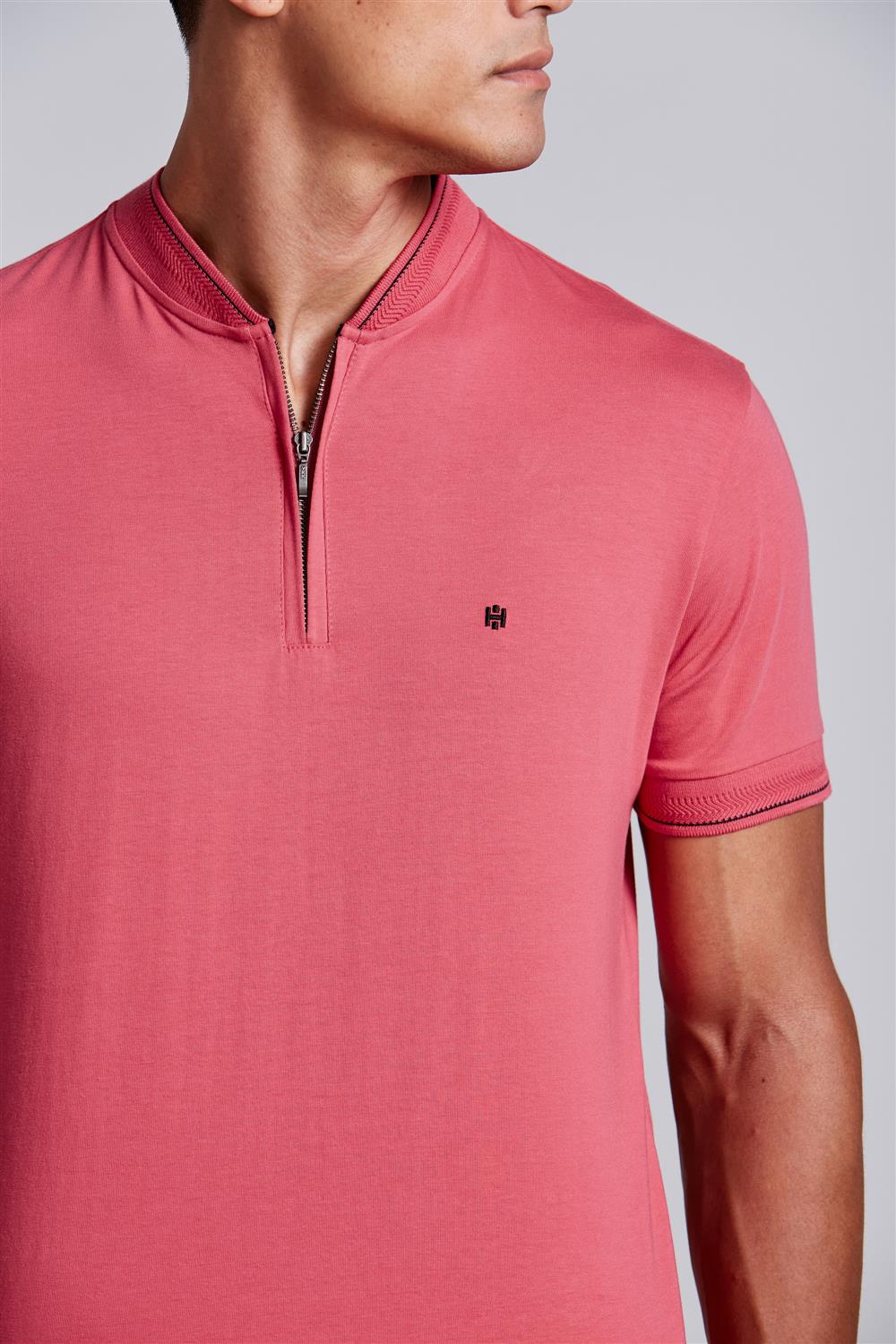 Polo Manga Curta com Zíper Básica Malha Slim Fit - Tulipa