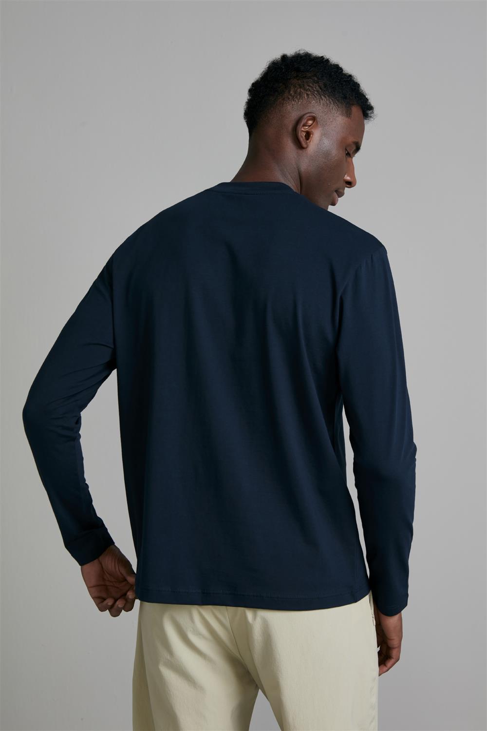 Camiseta Manga Longa Malha Comfort - Azul Marinho