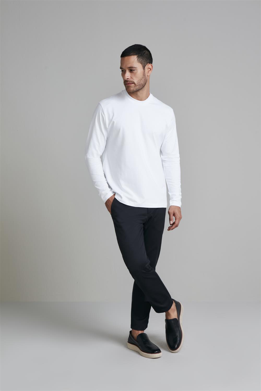 A Camiseta Manga Longa Malha Comfort é confeccionada em 96% Algodão e 4% Elastano, e é confeccionada em Meia Malha, é composta principalmente por Algodão e Elastano, tornando-a extremamente leve e macia. Além disso, possui ótima elasticidade, fazendo com que a peça tenha bom caimento ao corpo.
