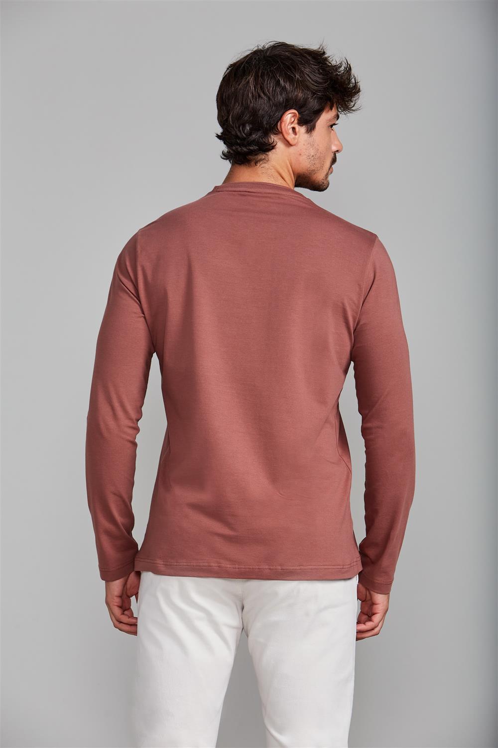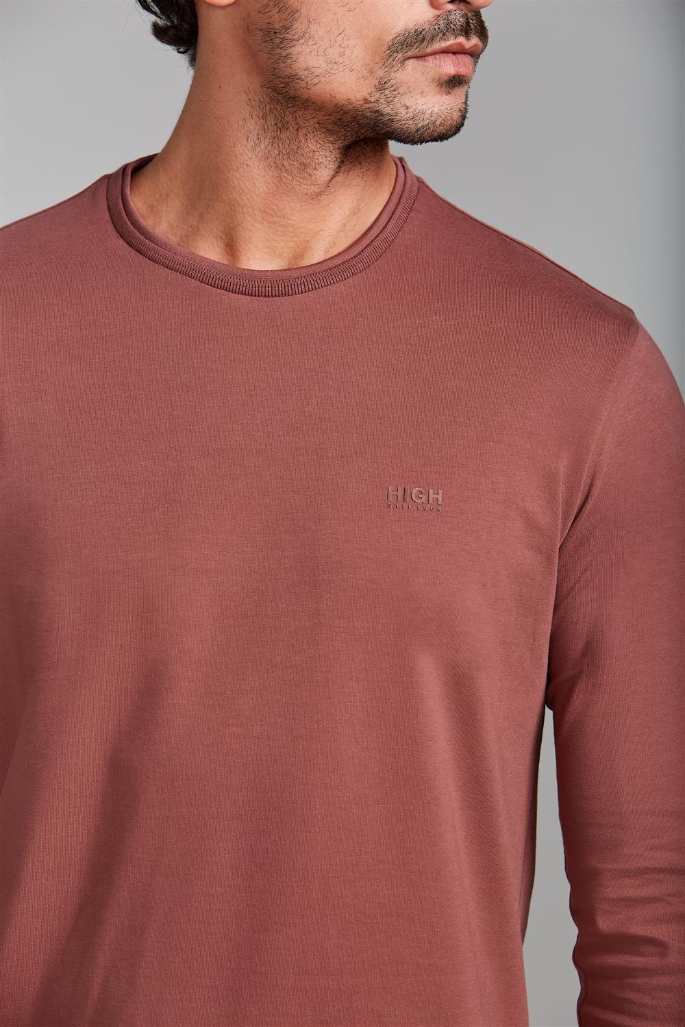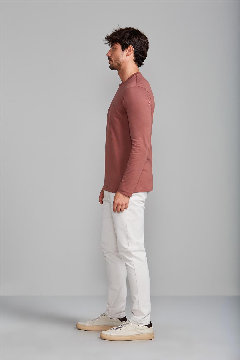 Camiseta Manga Longa Malha Slim Fit - Marrom Castanho
