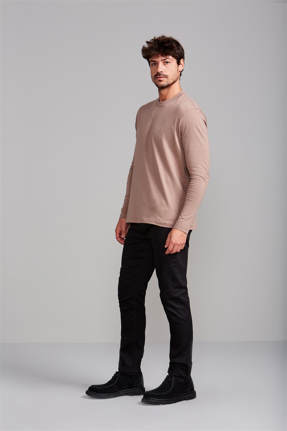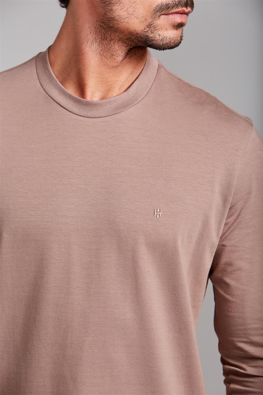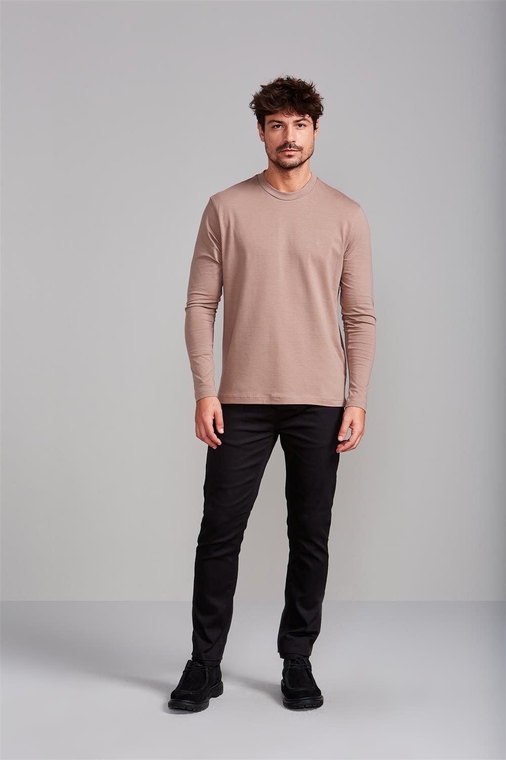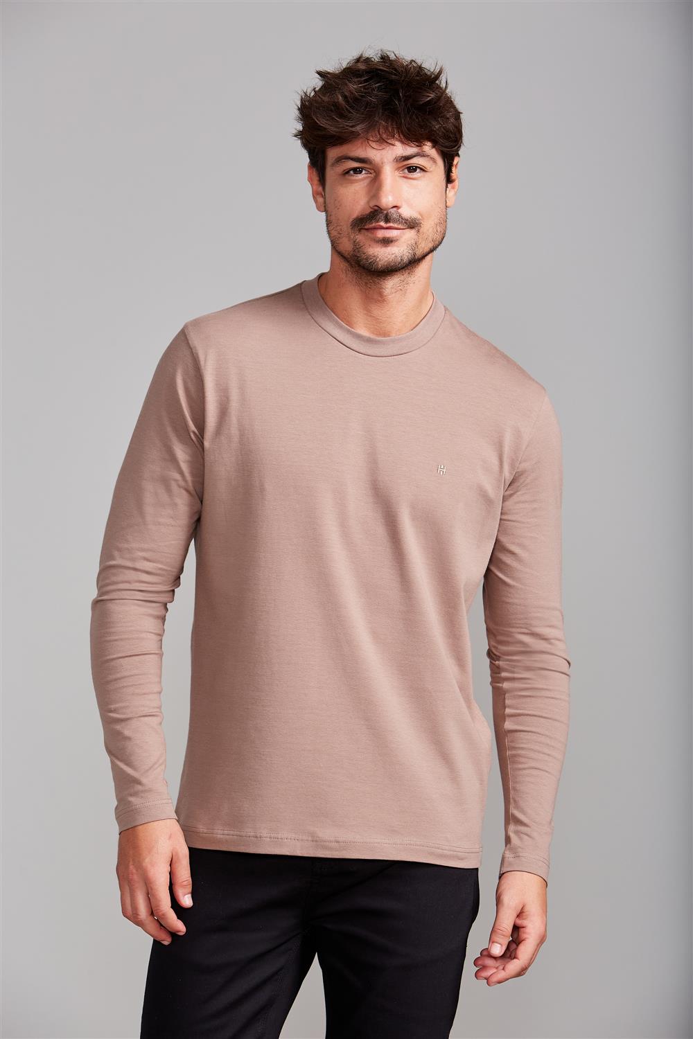 Camiseta Manga Longa Malha Comfort - Marrom Castanho