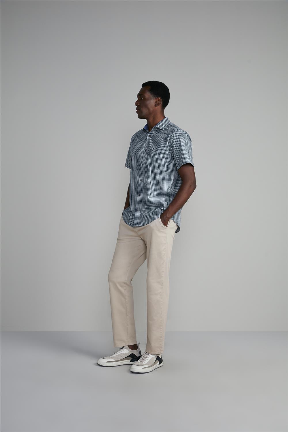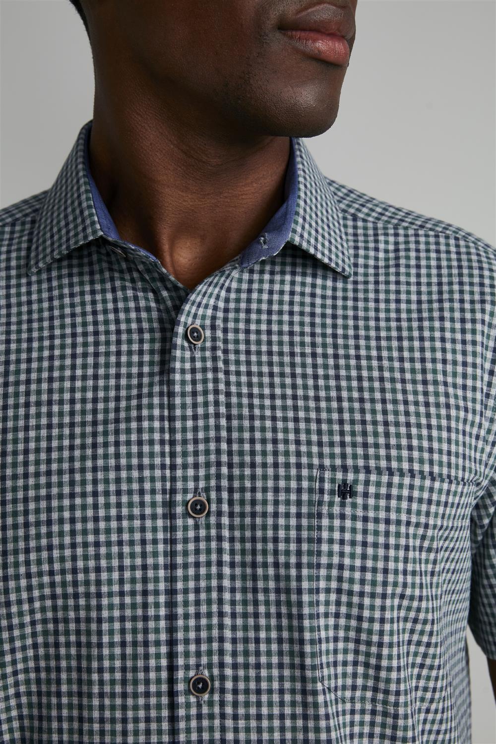 A Camisa Manga Curta com Bolso Comfort é confeccionada em 96% Algodão e 5% Viscose. A peça conta com colarinho Milano.
