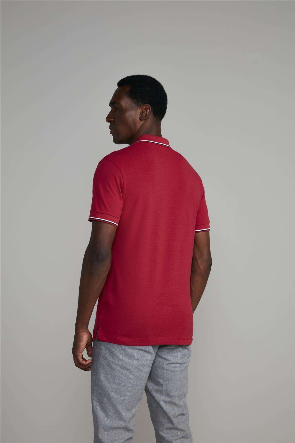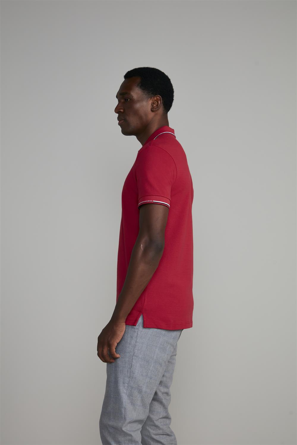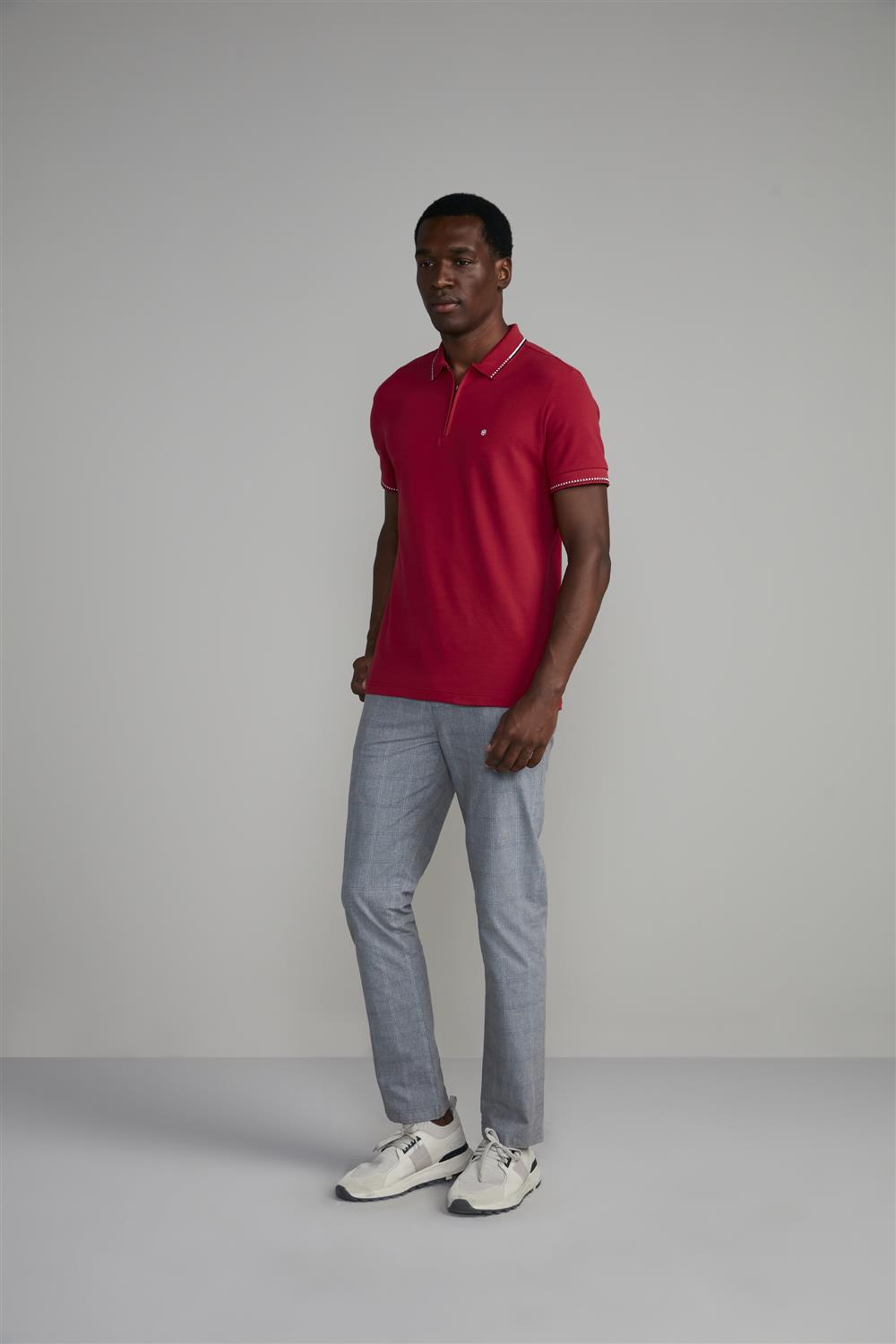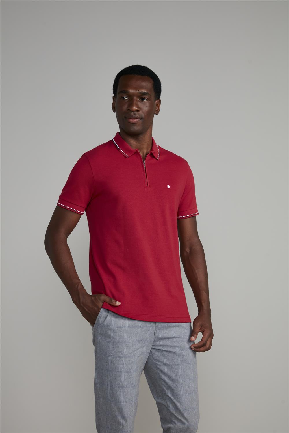 Camisa Polo com Zíper Piquet Slim Fit - Vermelho Rubi