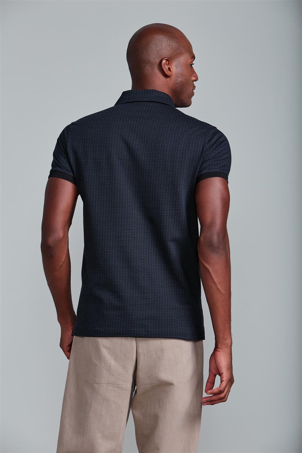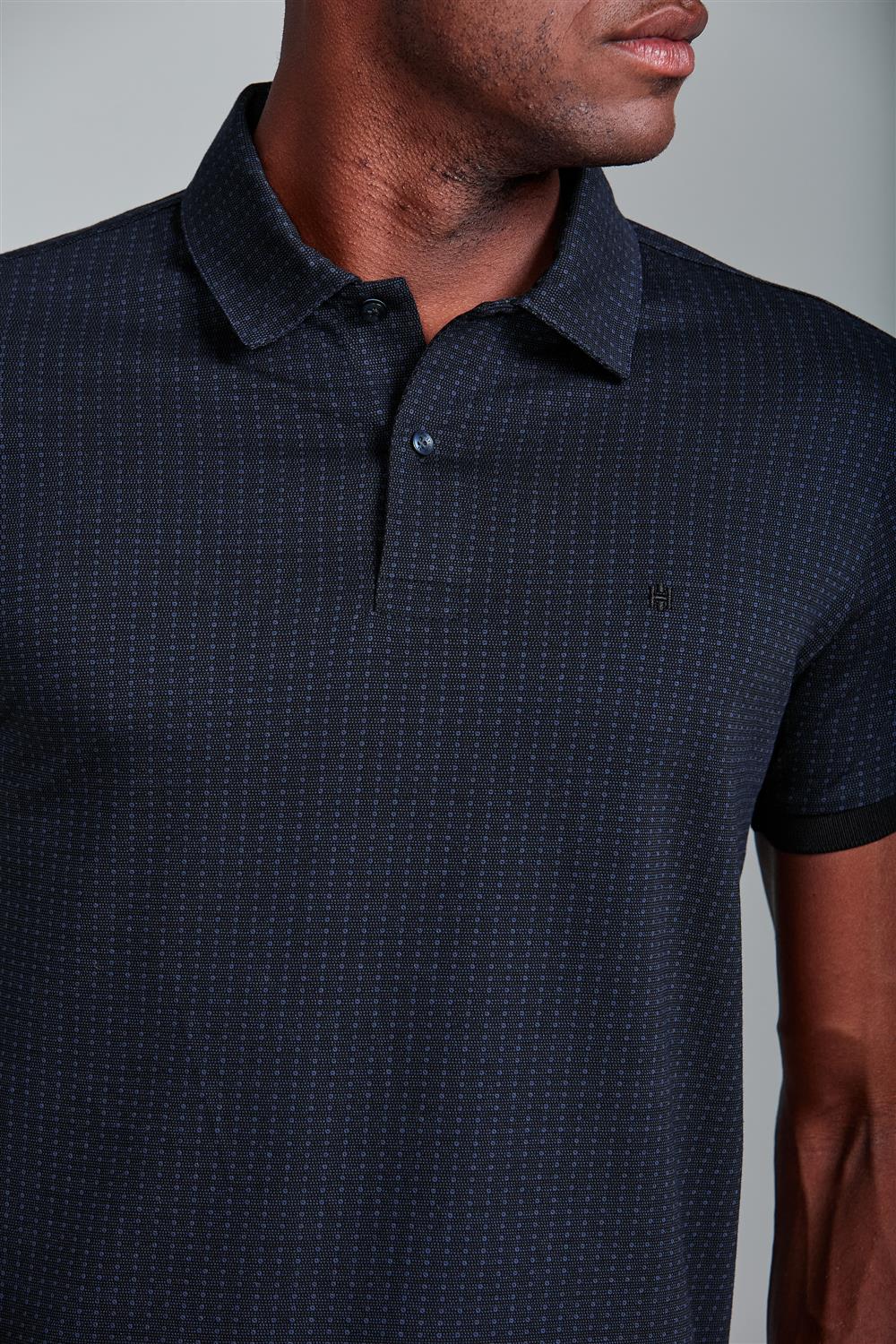 Camisa Polo Jacquard Slim Fit - Preto / Azul Petróleo