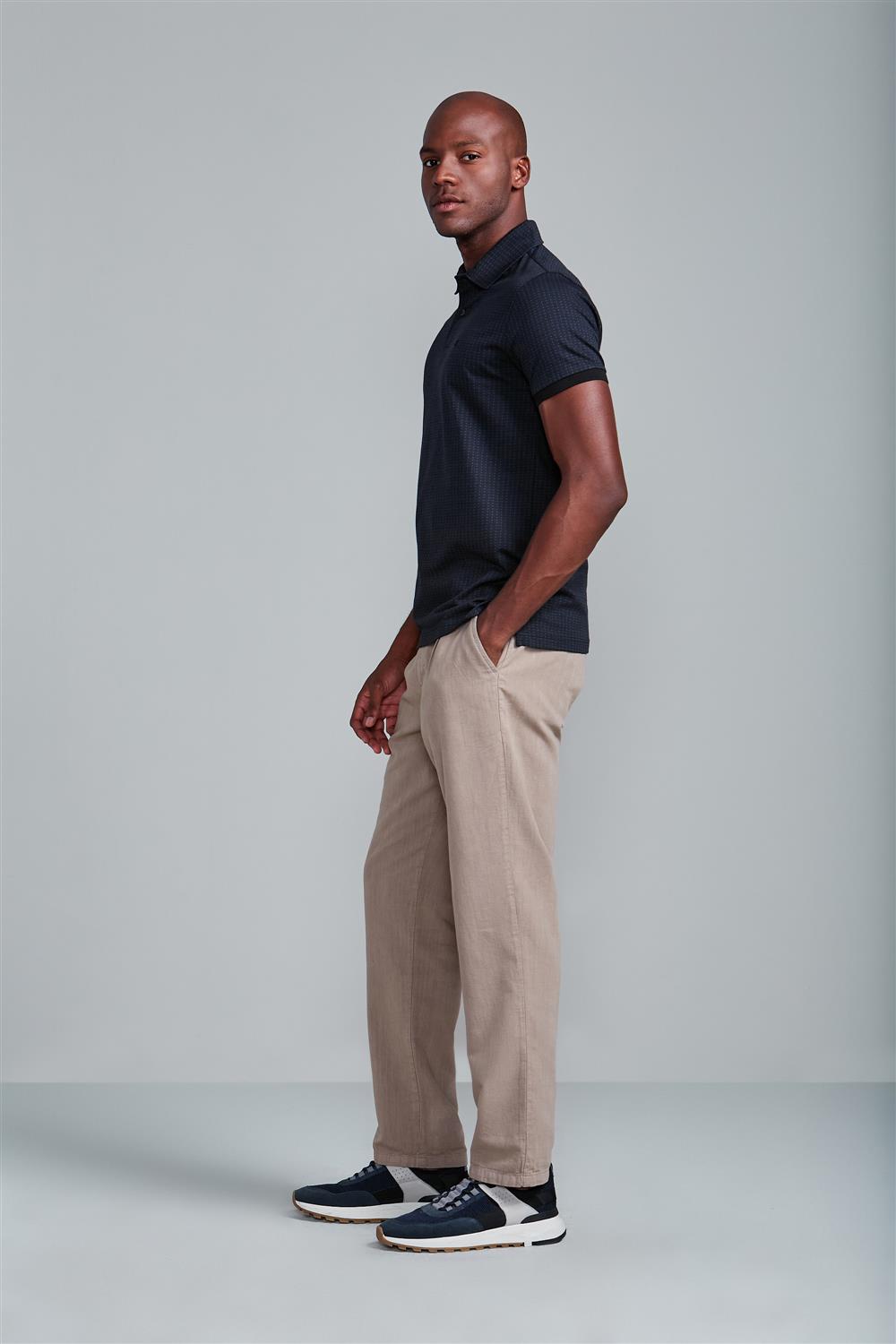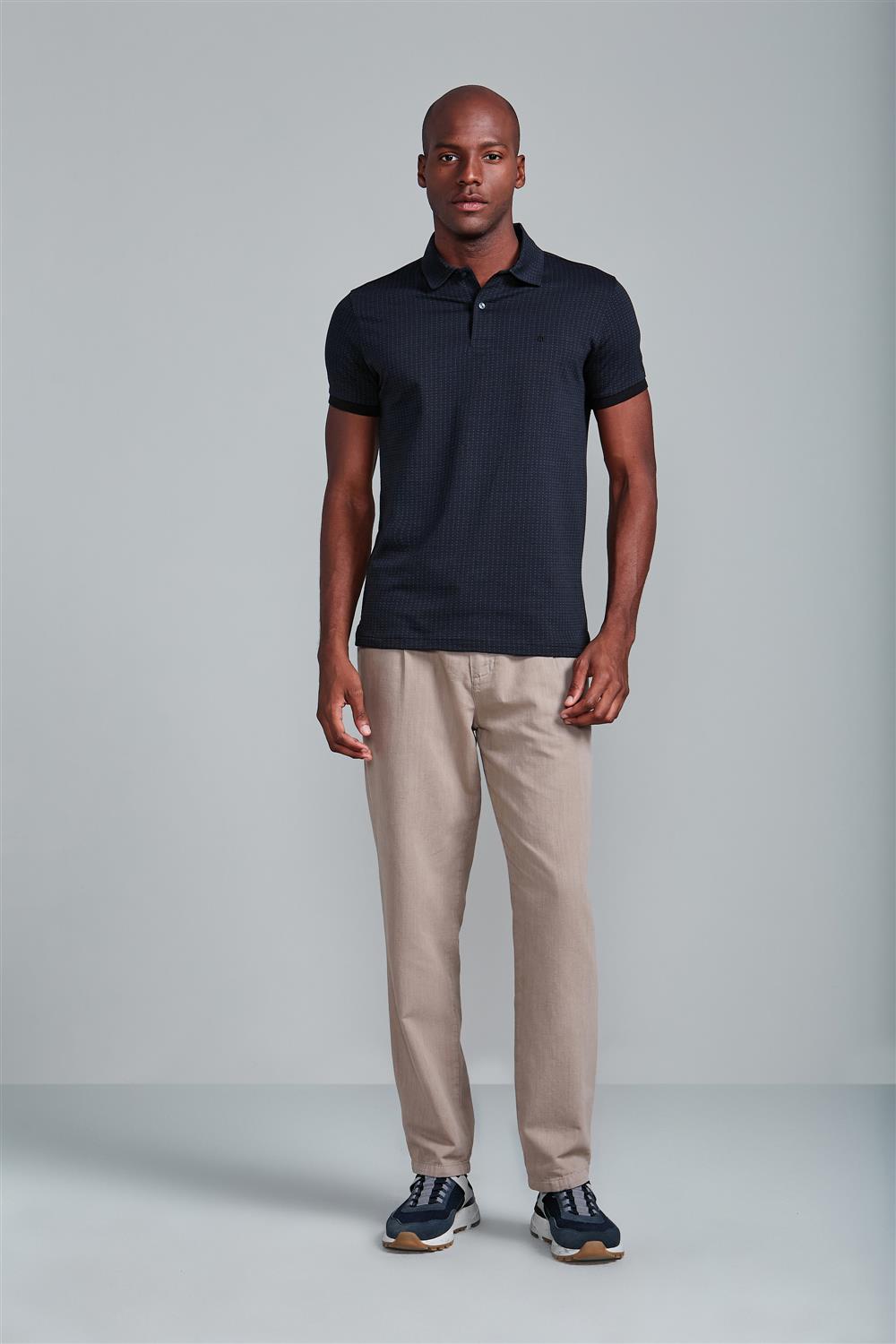 A Camisa Polo Jacquard Slim Fit é confeccionada em 100% Algodão e é confeccionada em tecido Jacquard, a trama resulta em um desenho na malha, possibilitando a criação de inúmeras padronagens. Sua característica mais importante é a durabilidade, visto que o entrelaçamento dos fios é mais complexo tornando-o mais resistente.
