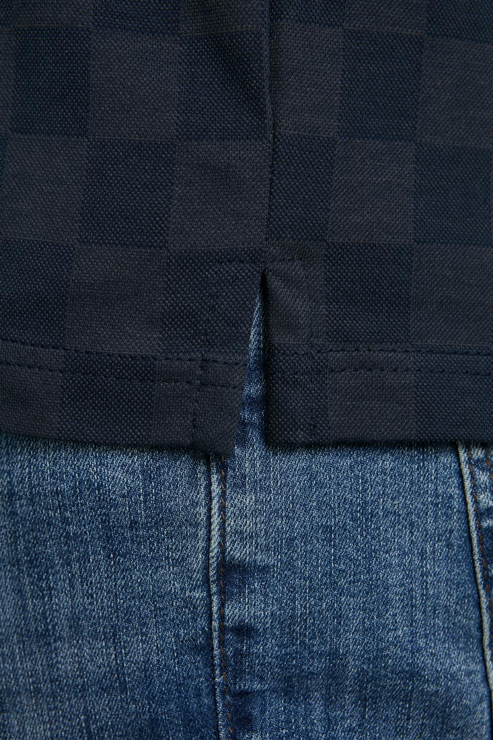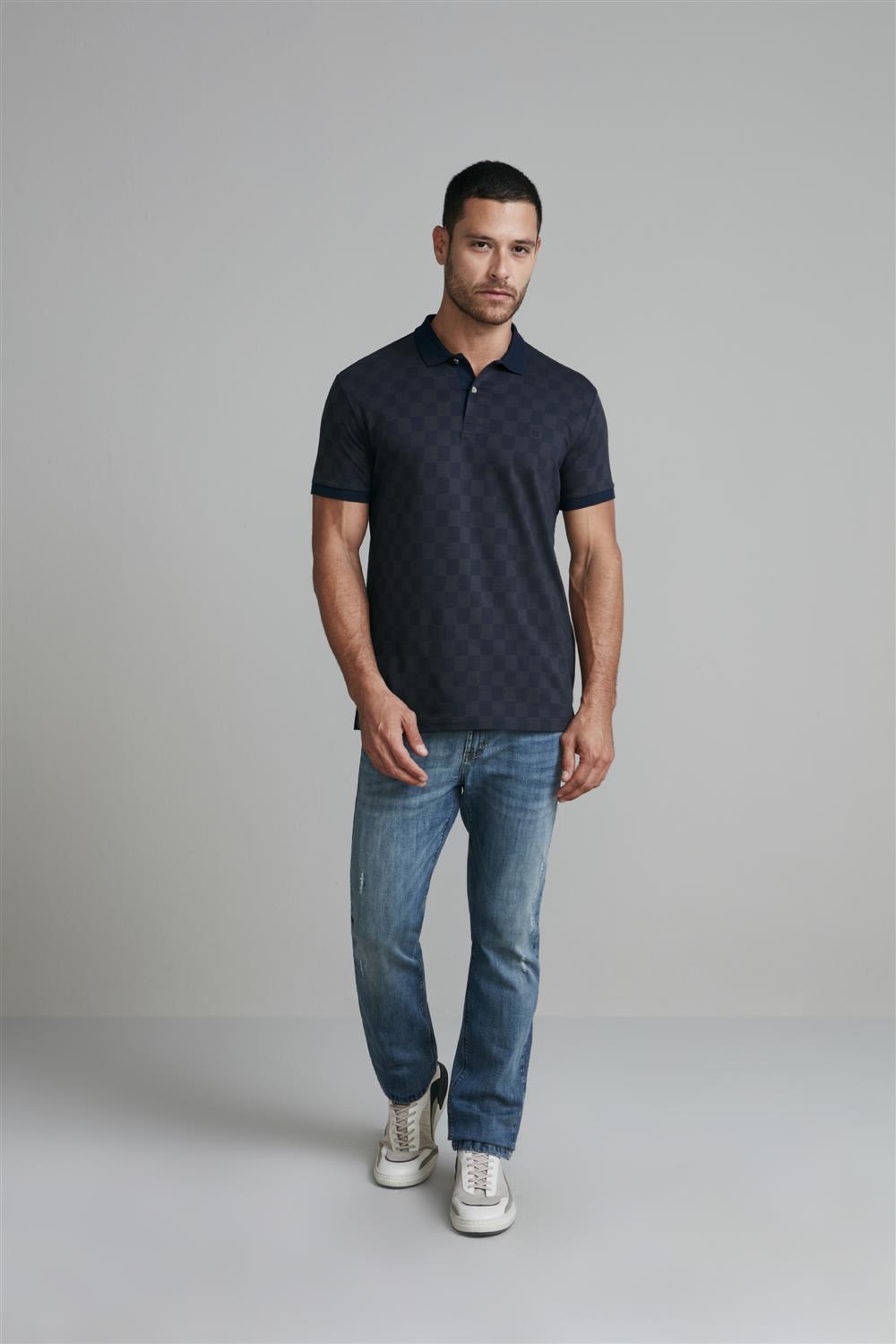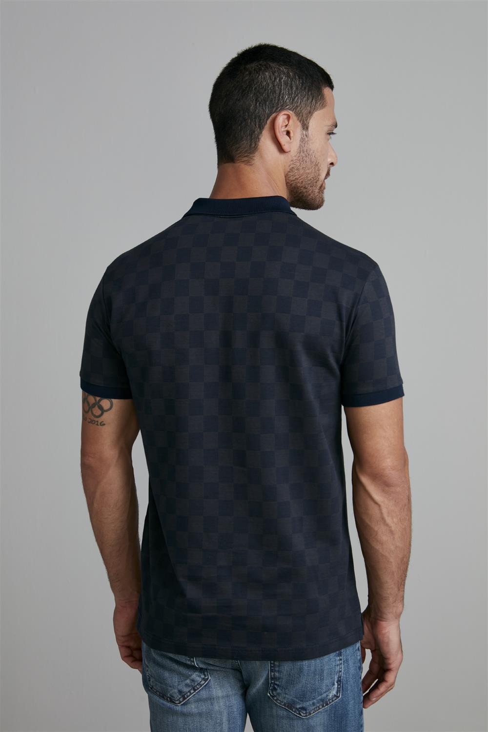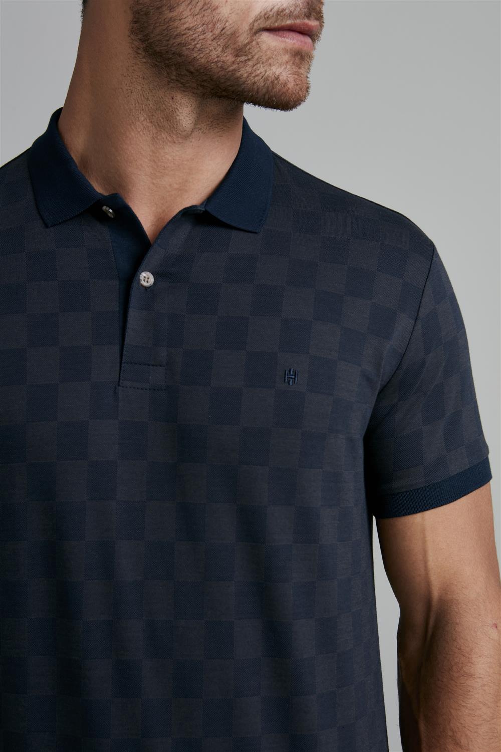 Camisa Polo Jacquard Slim Fit - Azul Marinho / Cinza Chumbo