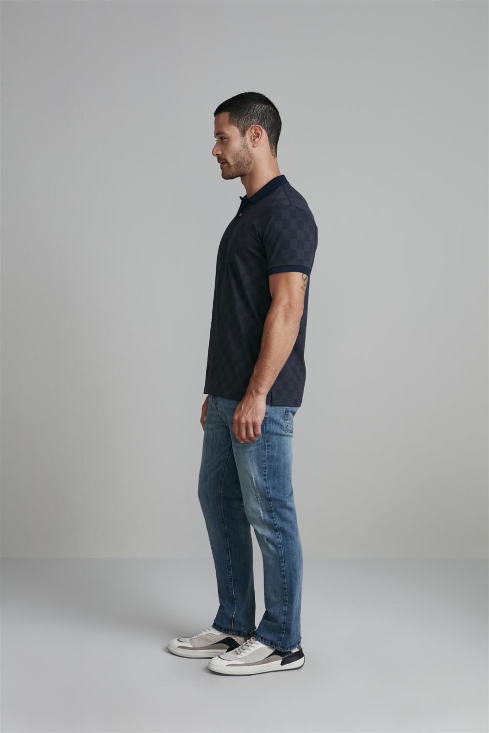 A Camisa Polo Jacquard Slim Fit é confeccionada em 100% Algodão e é confeccionada em tecido Jacquard, a trama resulta em um desenho na malha, possibilitando a criação de inúmeras padronagens. Sua característica mais importante é a durabilidade, visto que o entrelaçamento dos fios é mais complexo tornando-o mais resistente.