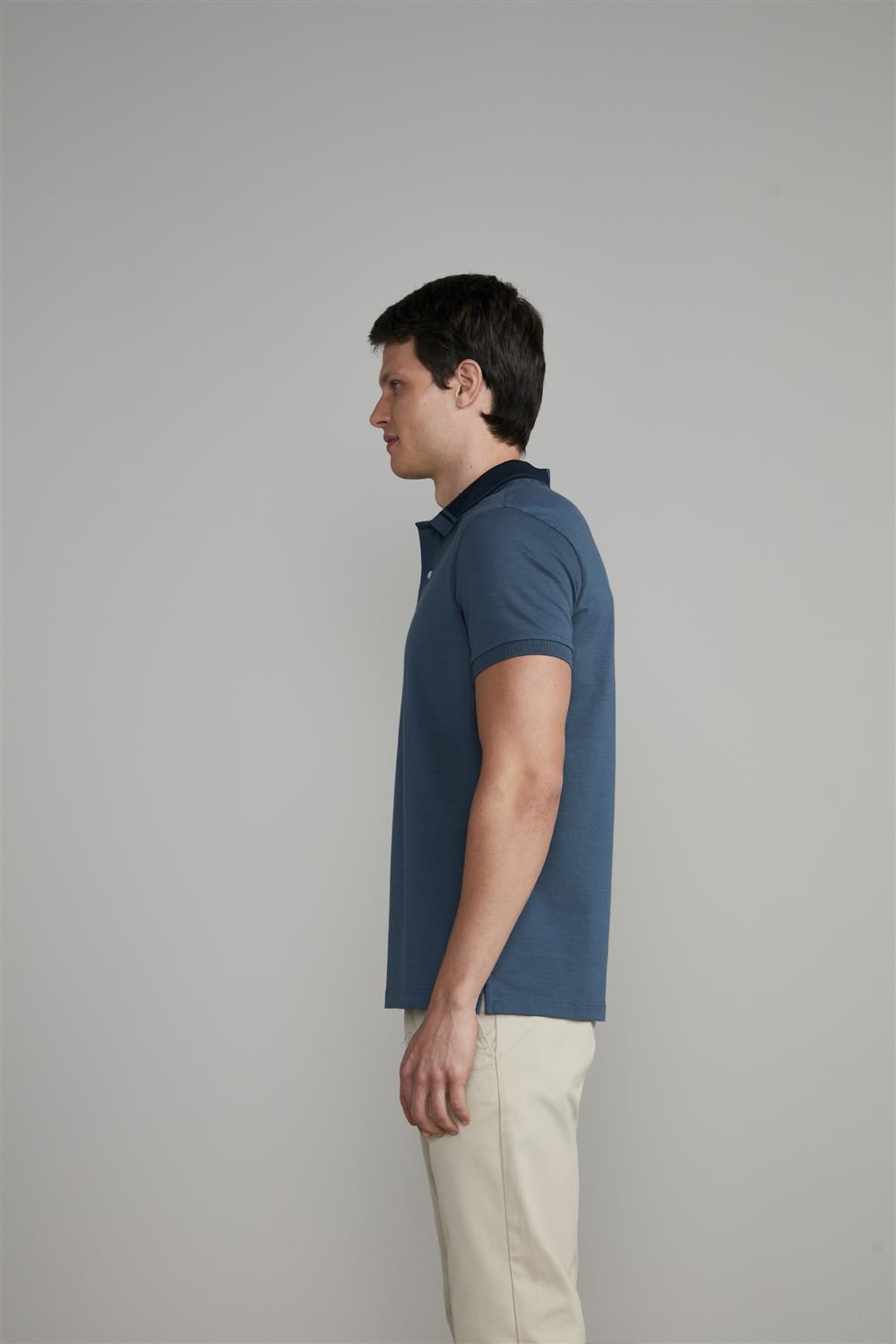 Camisa Polo Malha Slim Fit - Azul Cobalto