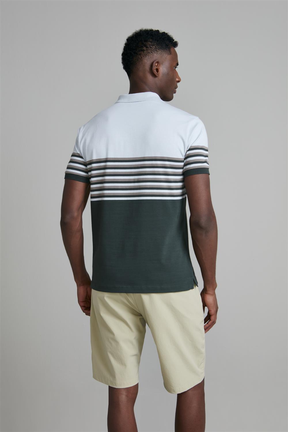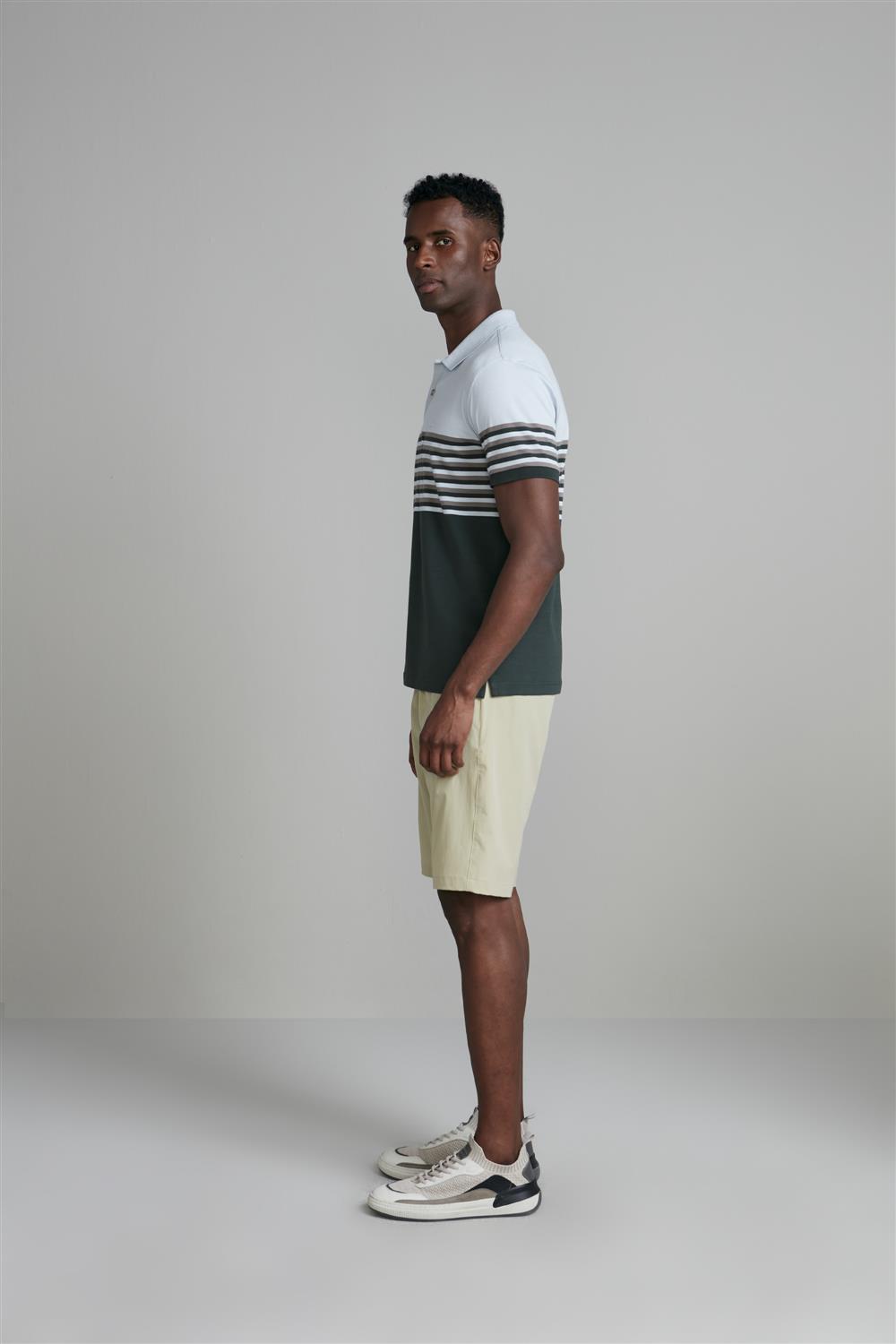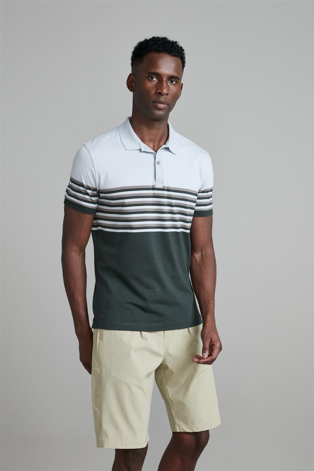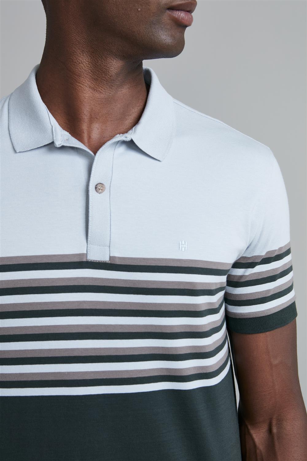 Camisa Polo Malha Slim Fit - Azul Celeste / Verde Floresta