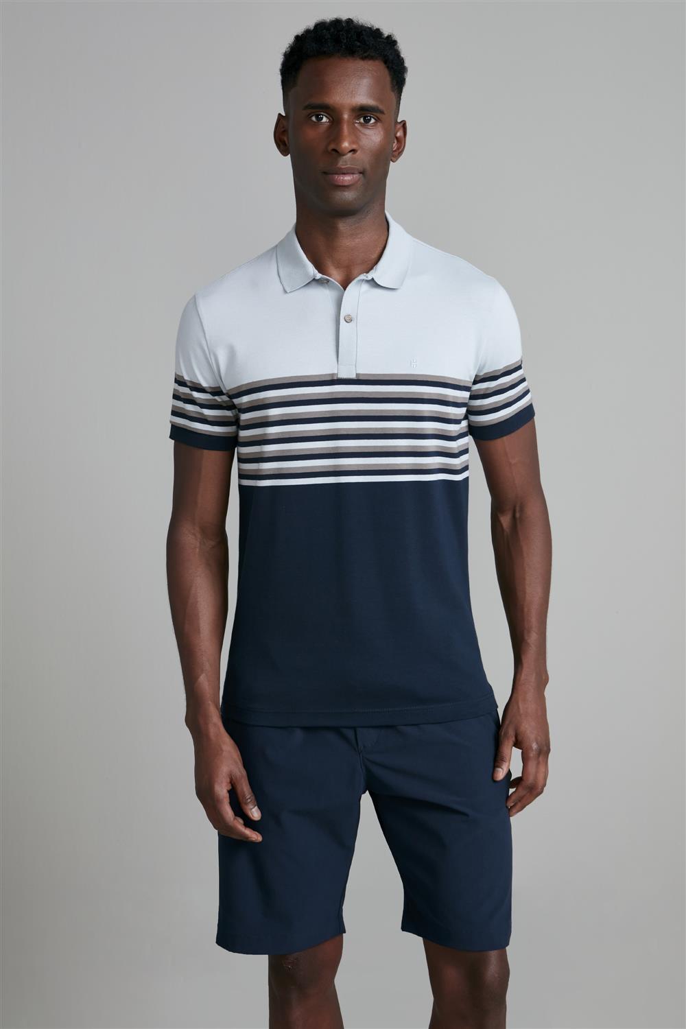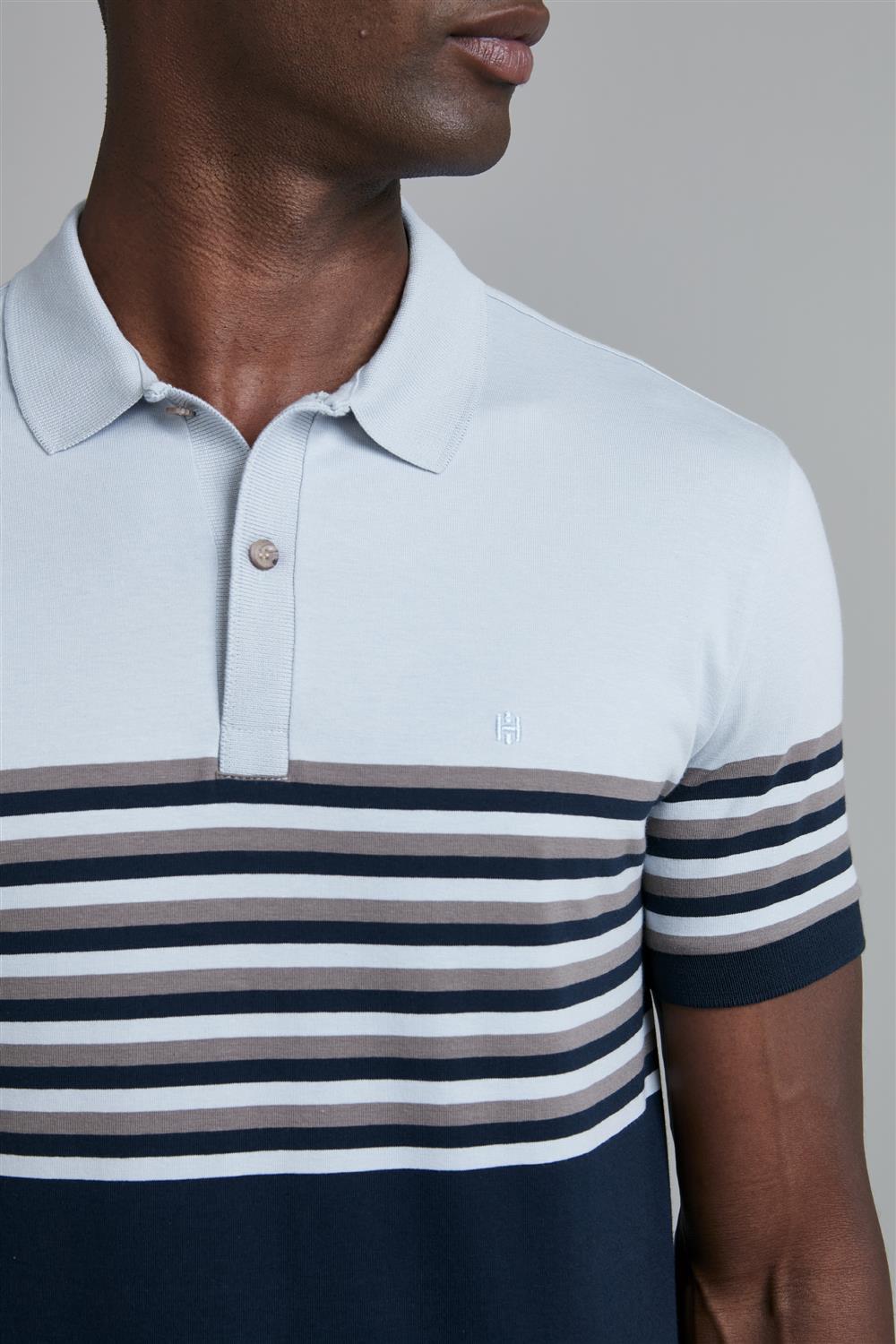 Camisa Polo Malha Slim Fit - Azul Celeste / Azul Marinho