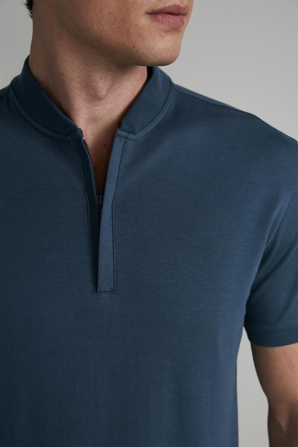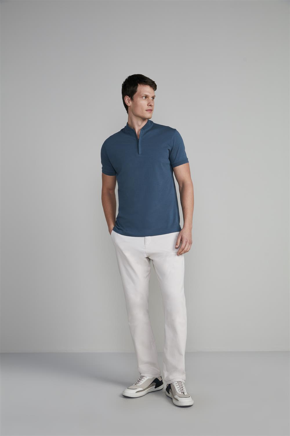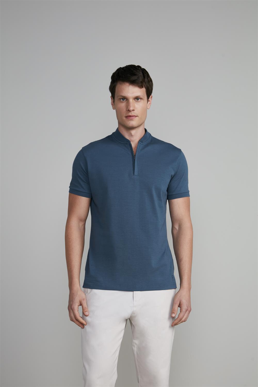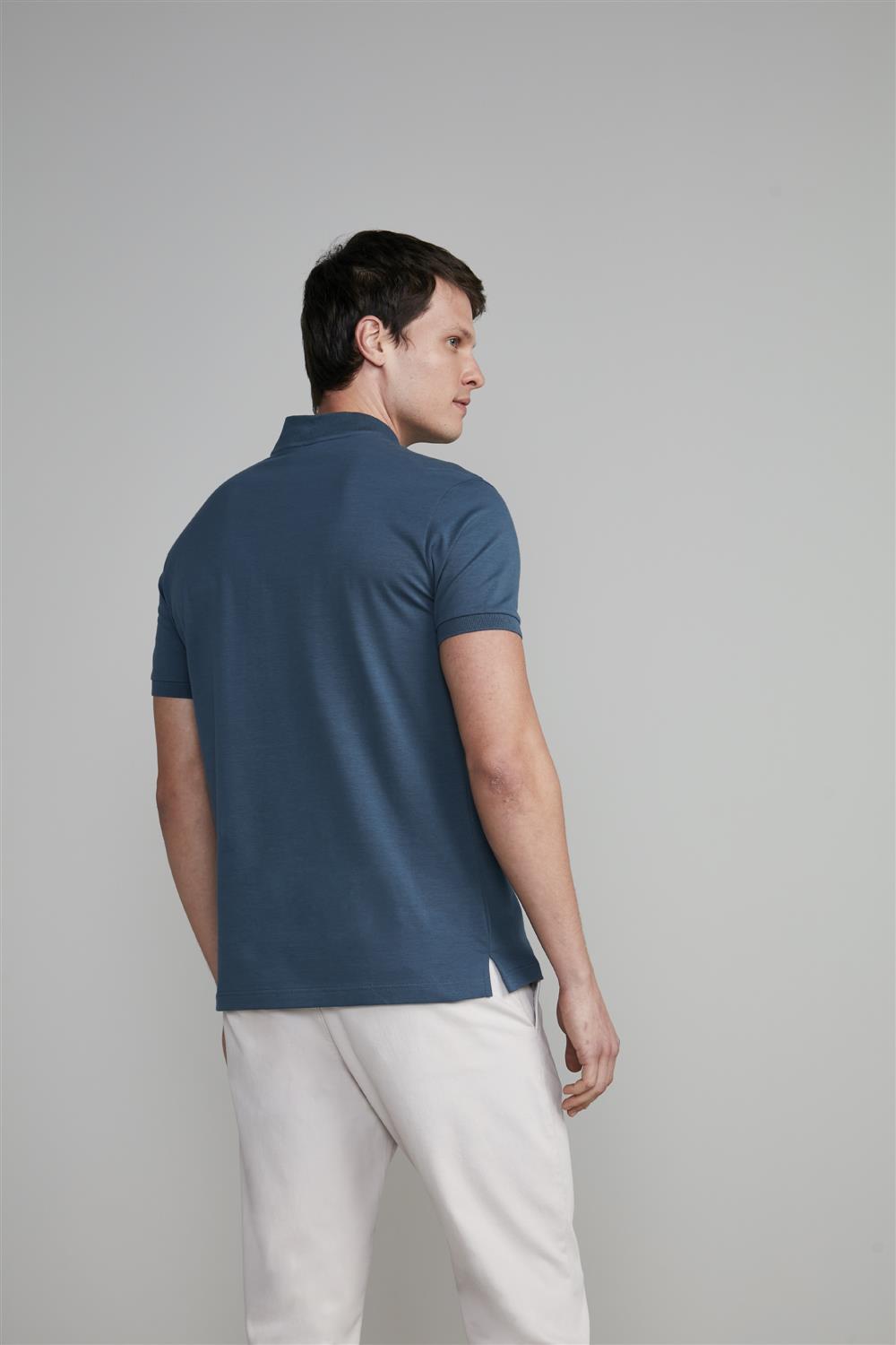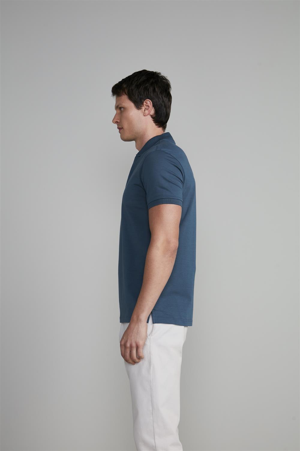 Camisa Polo Malha Slim Fit - Cinza Cobalto