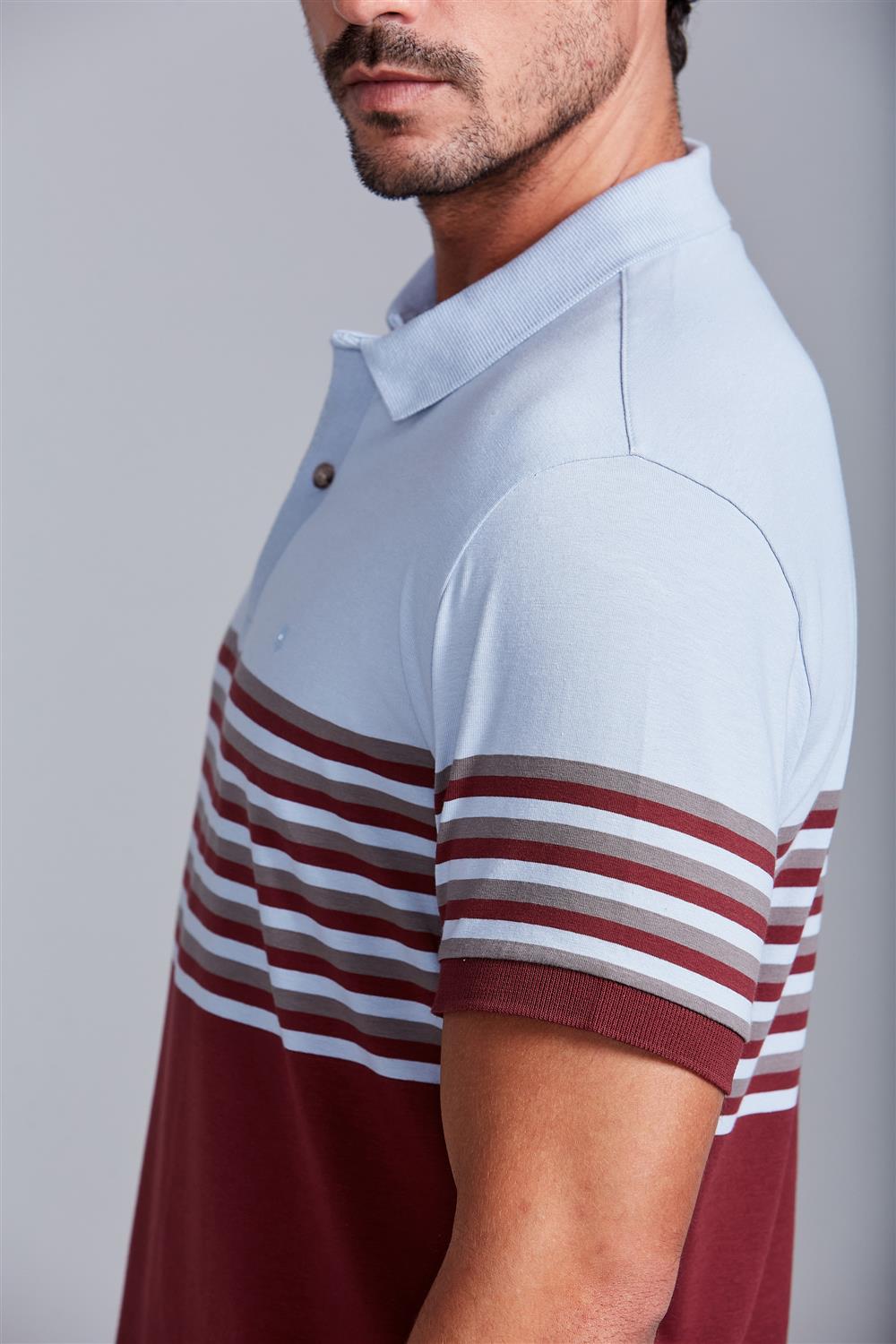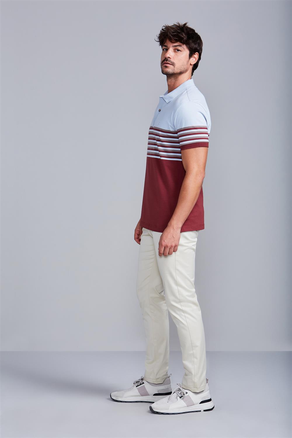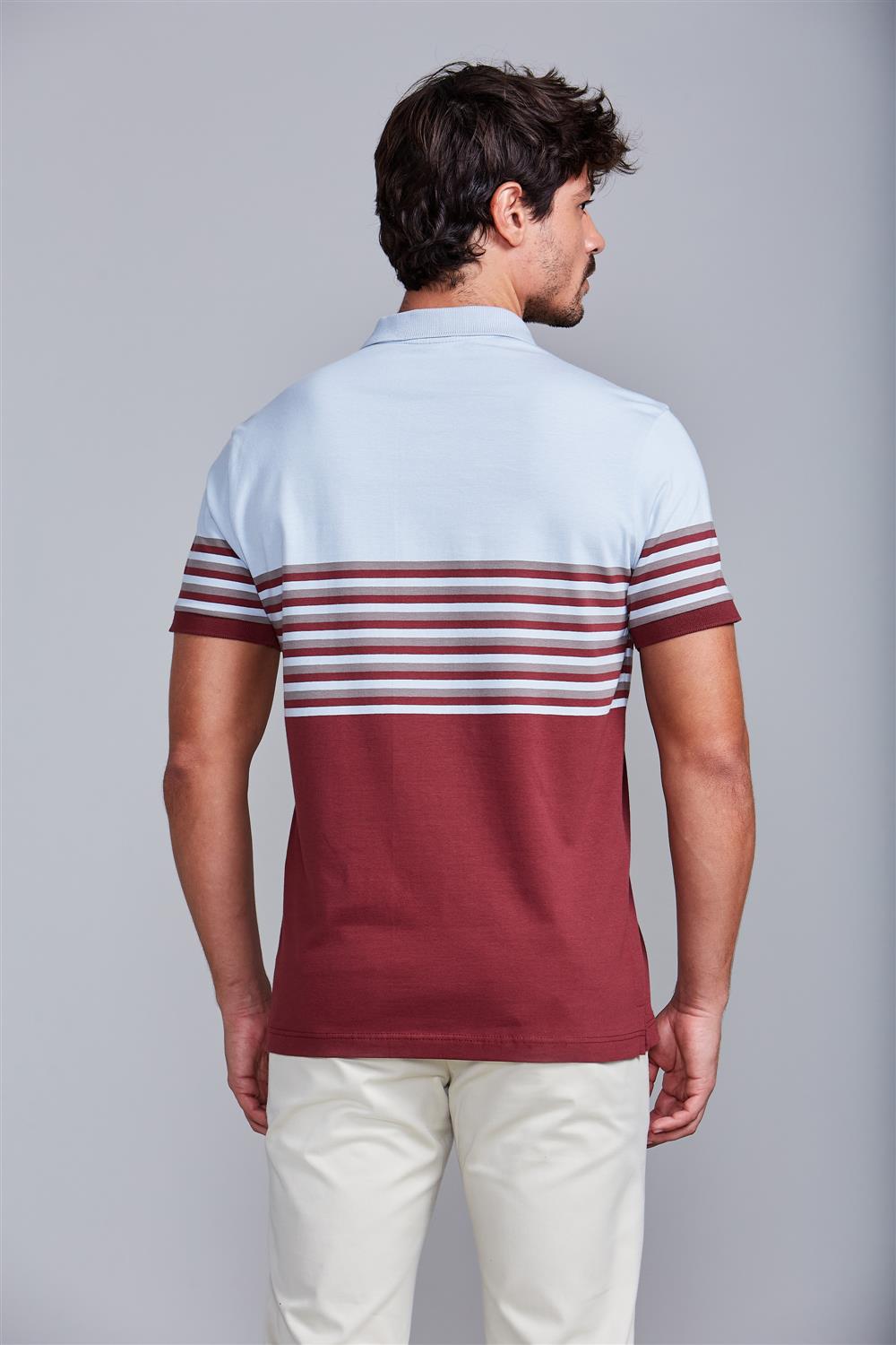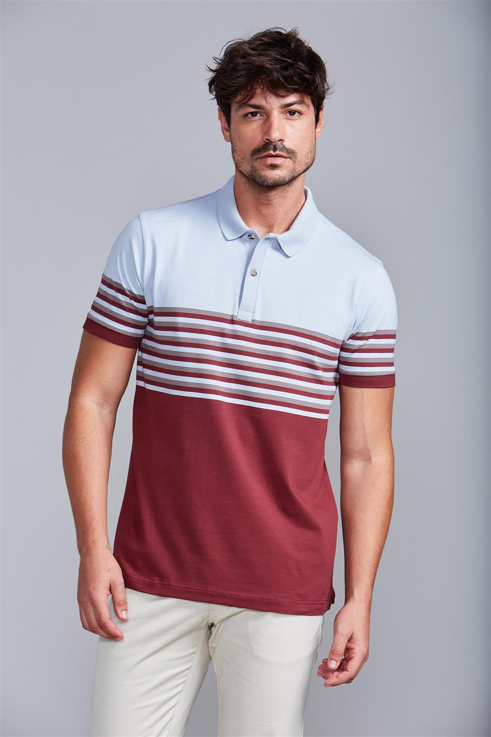 Camisa Polo Malha Slim Fit - Azul Celeste / Marrom Capuccino