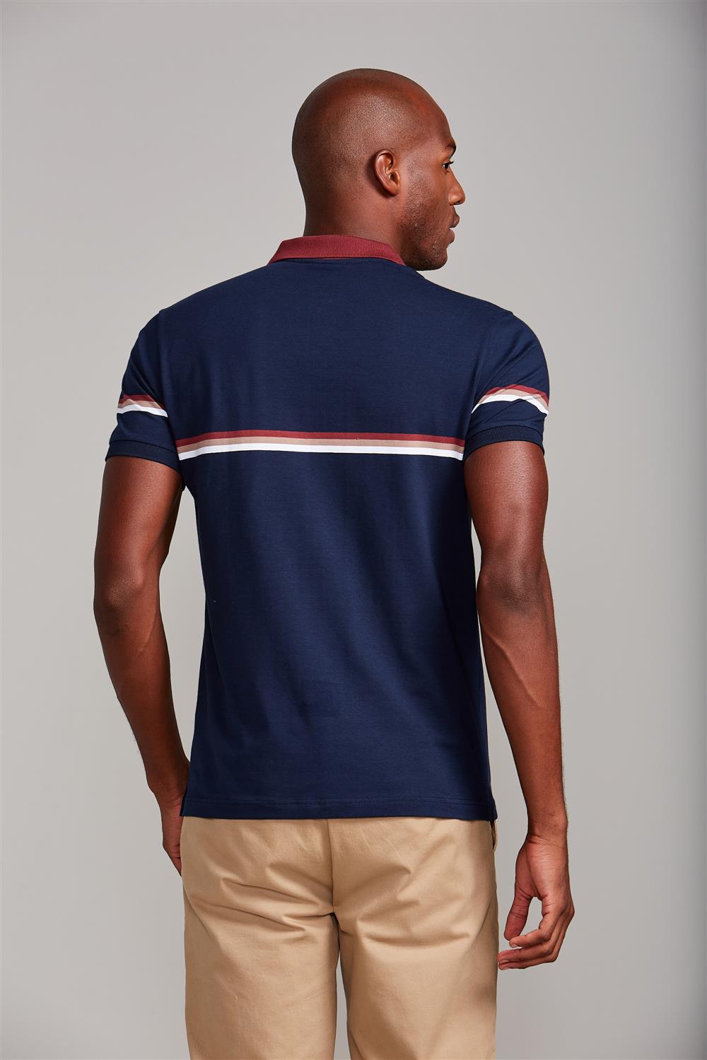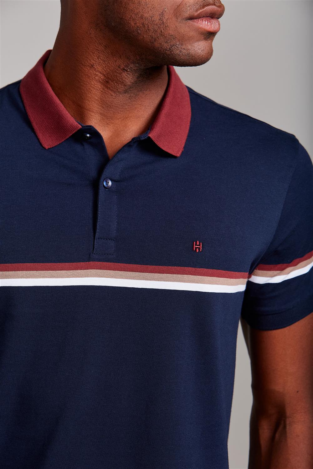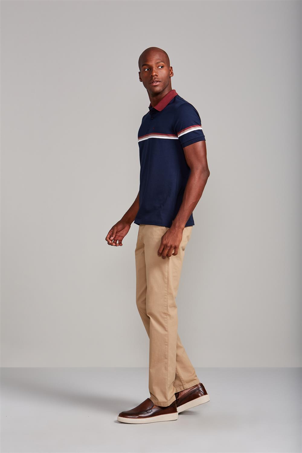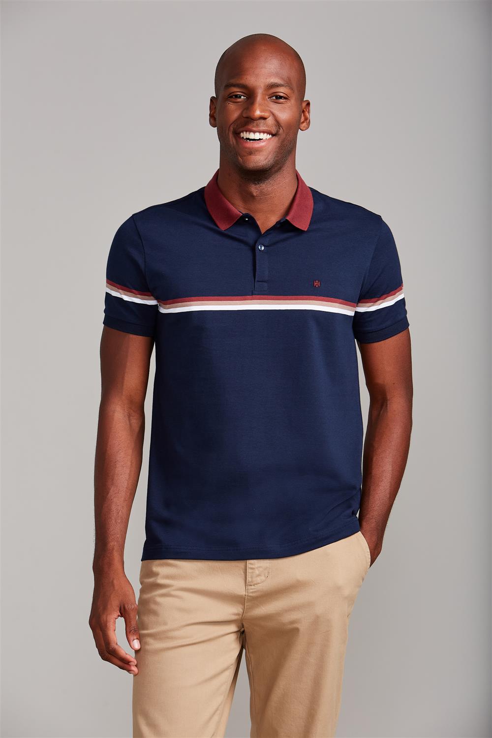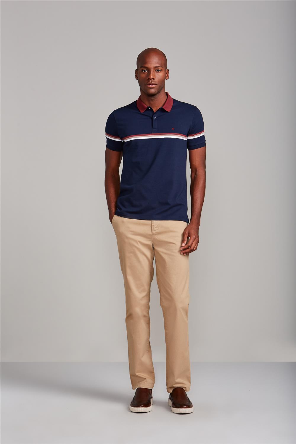 Camisa Polo Malha Slim Fit - Azul Marinho / Marrom Capuccino