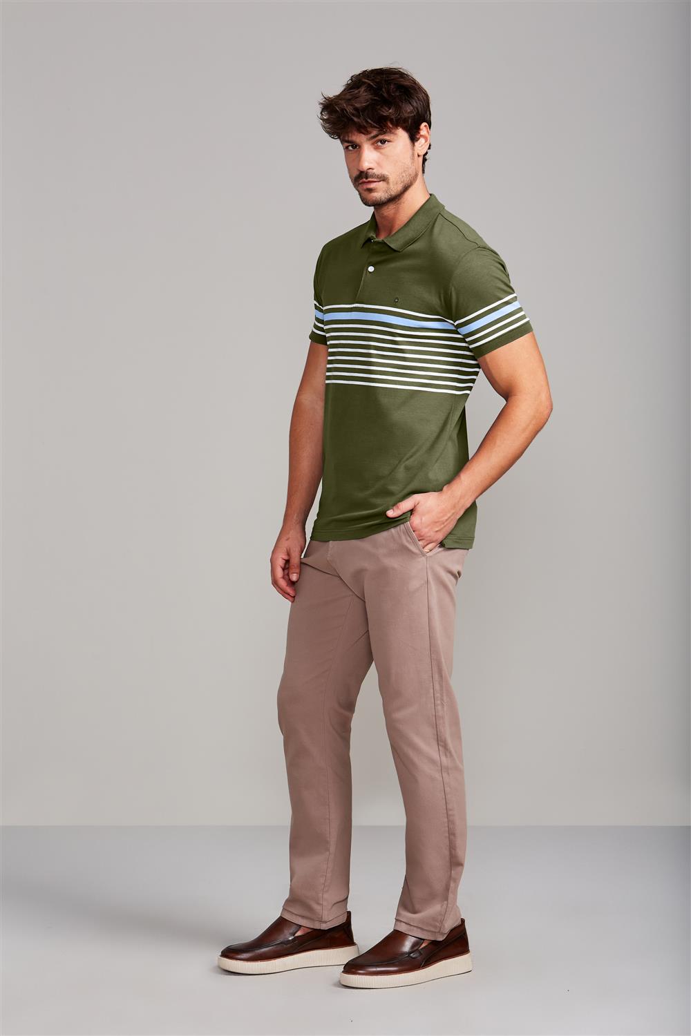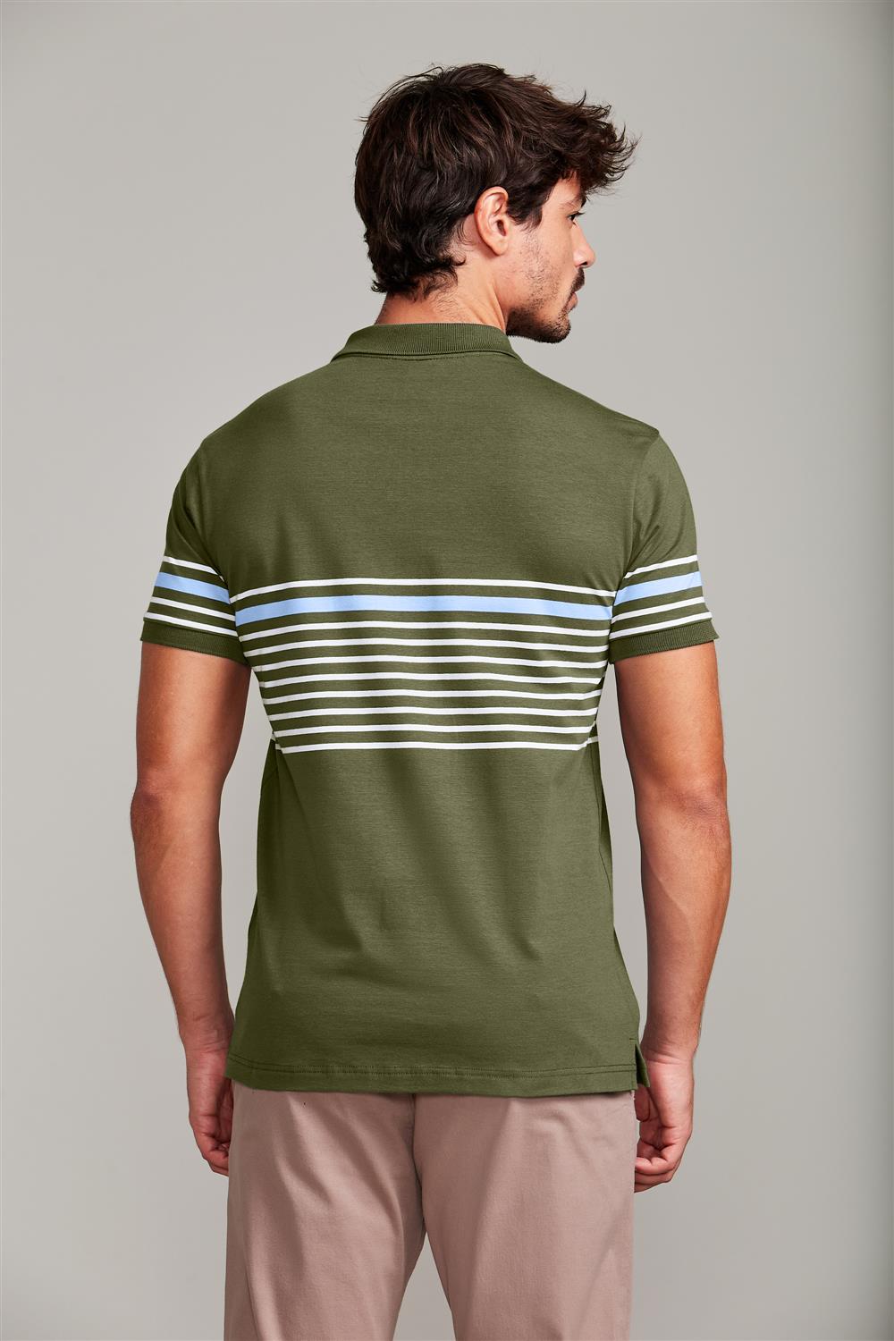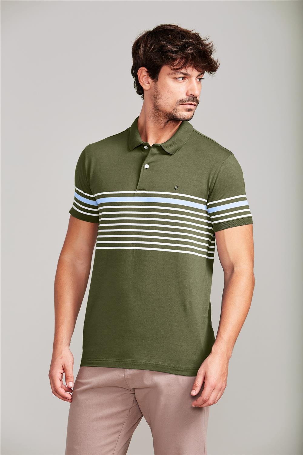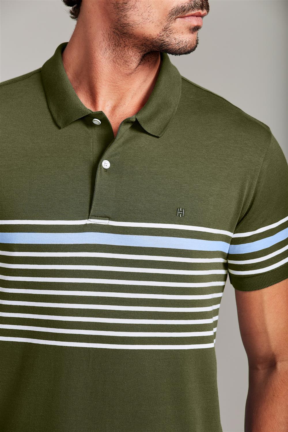 Camisa Polo Malha Slim Fit - Verde Azeitona / Verde Folha