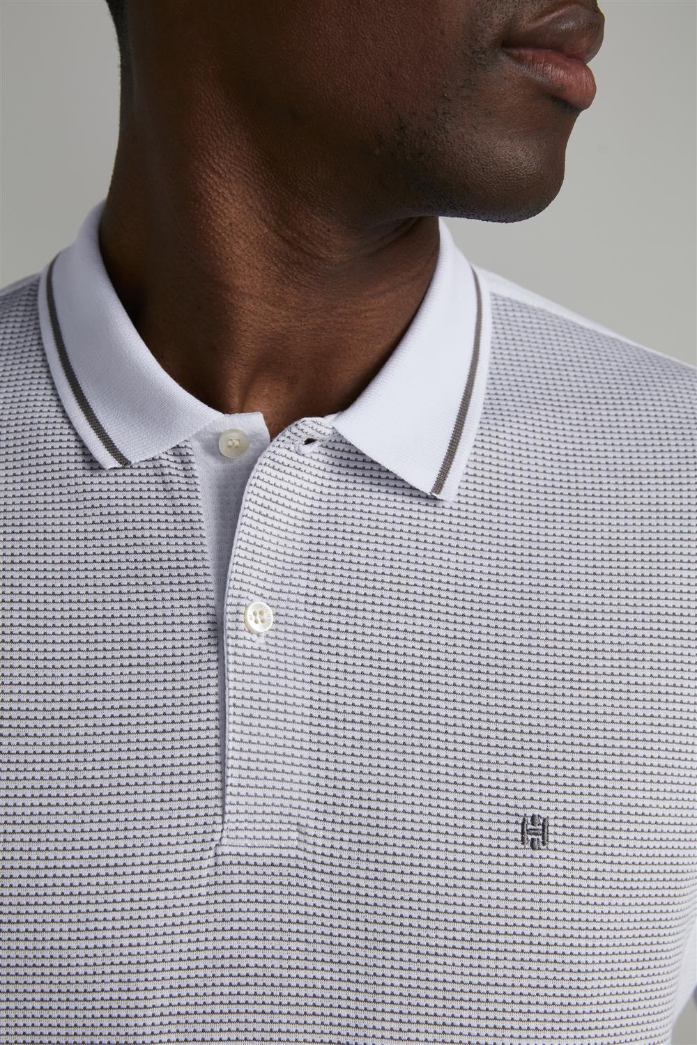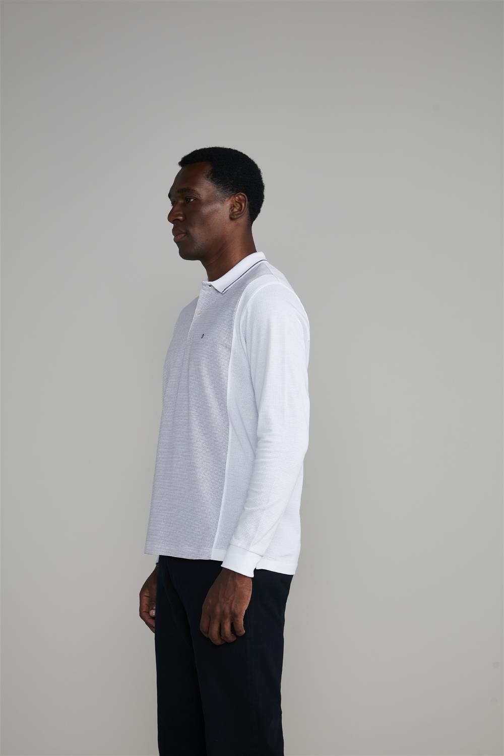 Camisa Polo Manga Longa Jacquard Comfort - Cinza Concreto / Branco