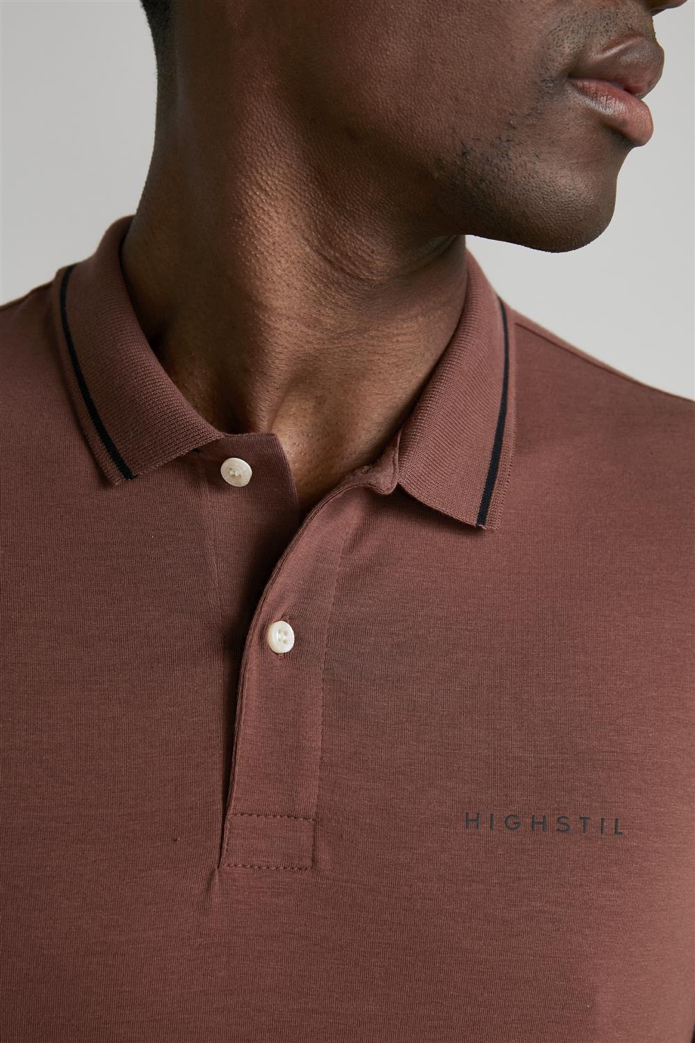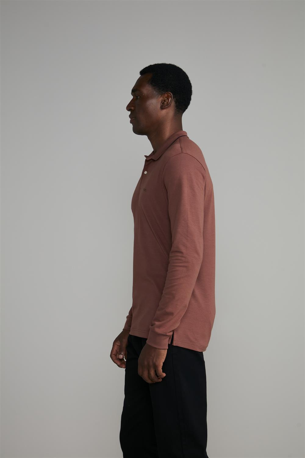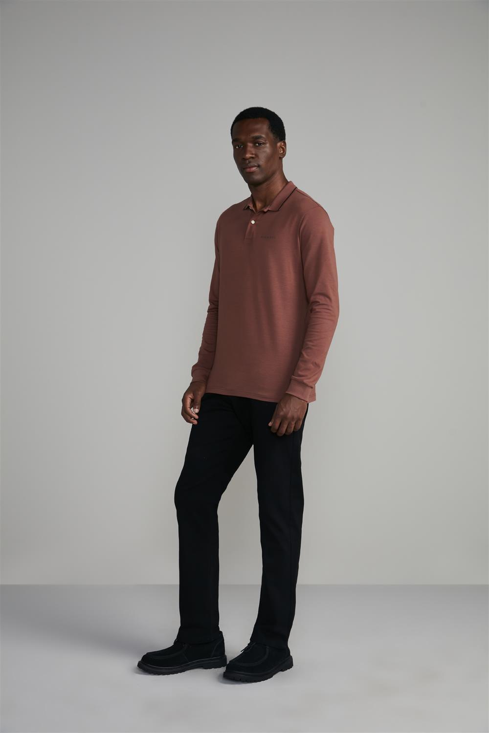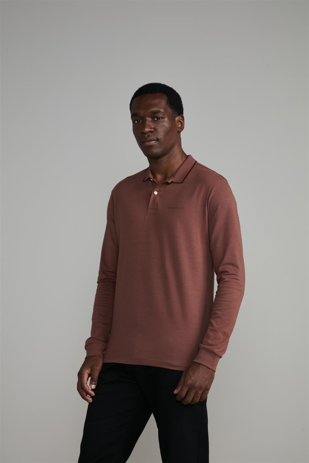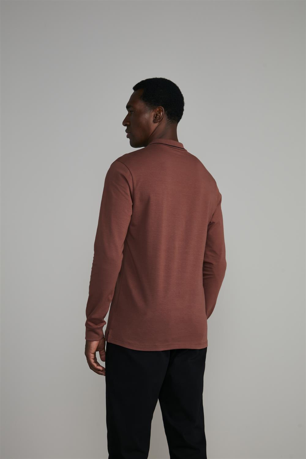 Camisa Polo Manga Longa Malha Slim Fit - Marrom Castanho