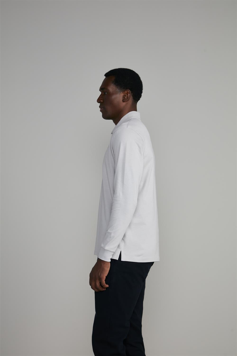 Camisa Polo Manga Longa Malha Comfort - Cinza