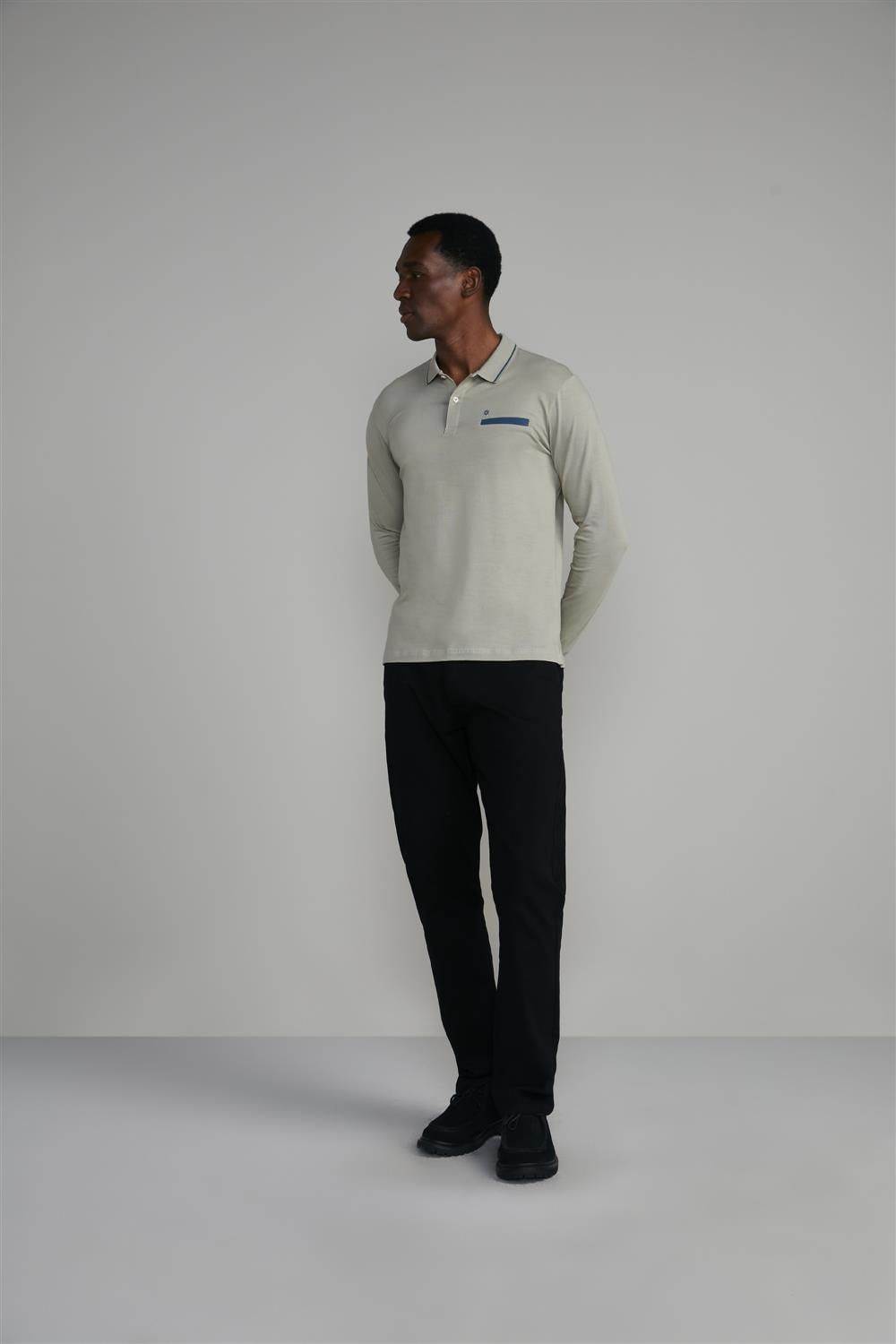 Camisa Polo Manga Longa Malha Slim Fit - Verde Folha