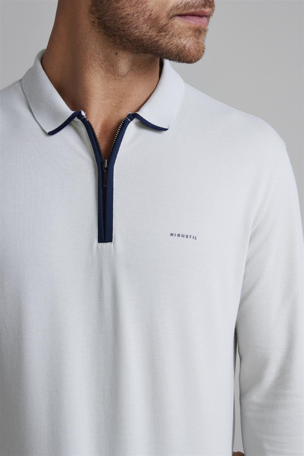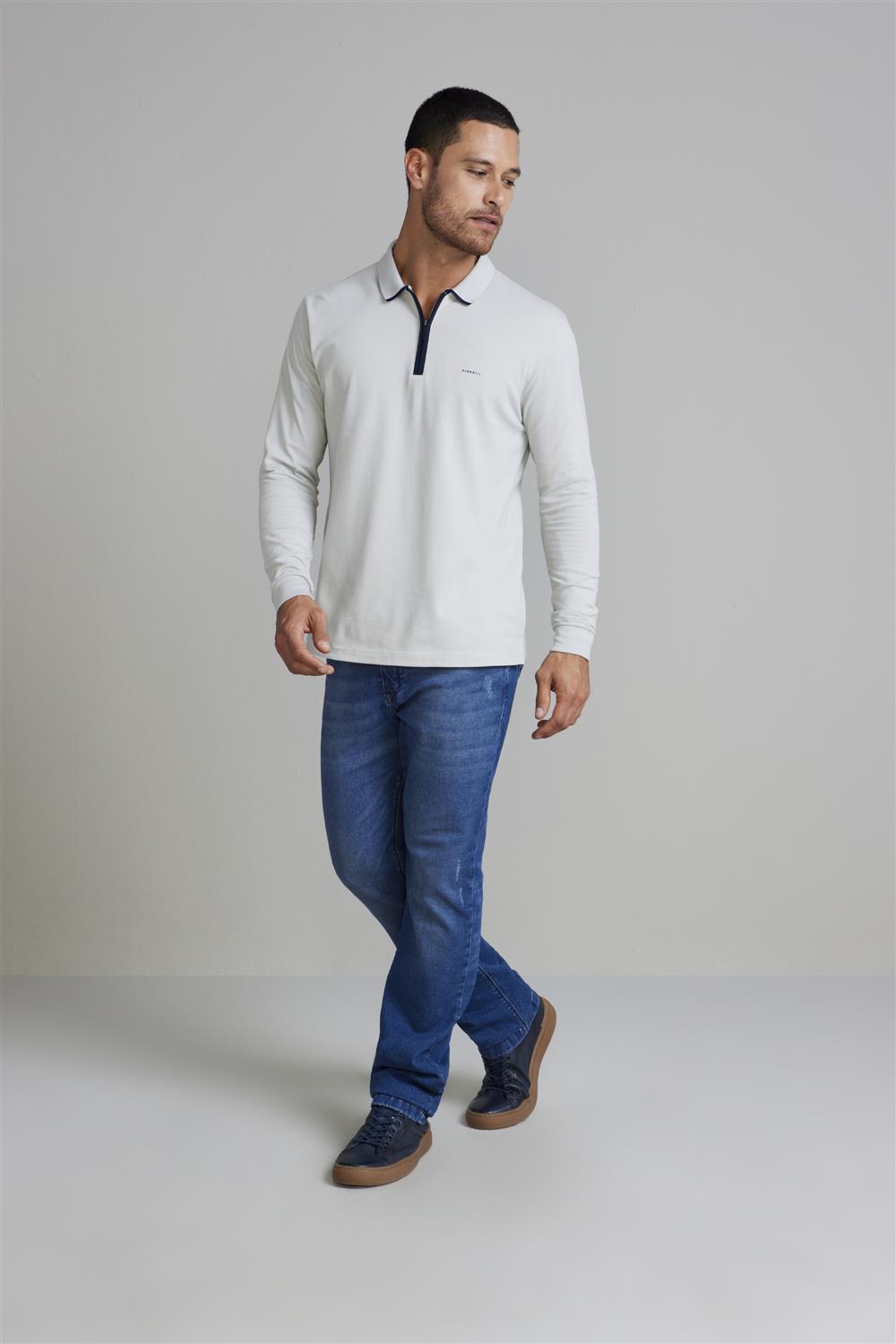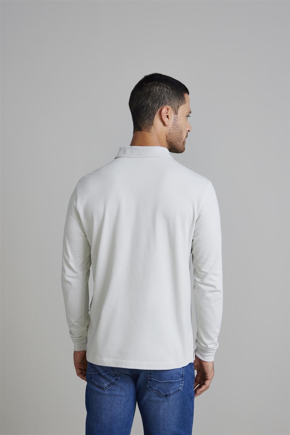 Camisa Polo Manga Longa com Zíper Piquet Comfort - Cinza