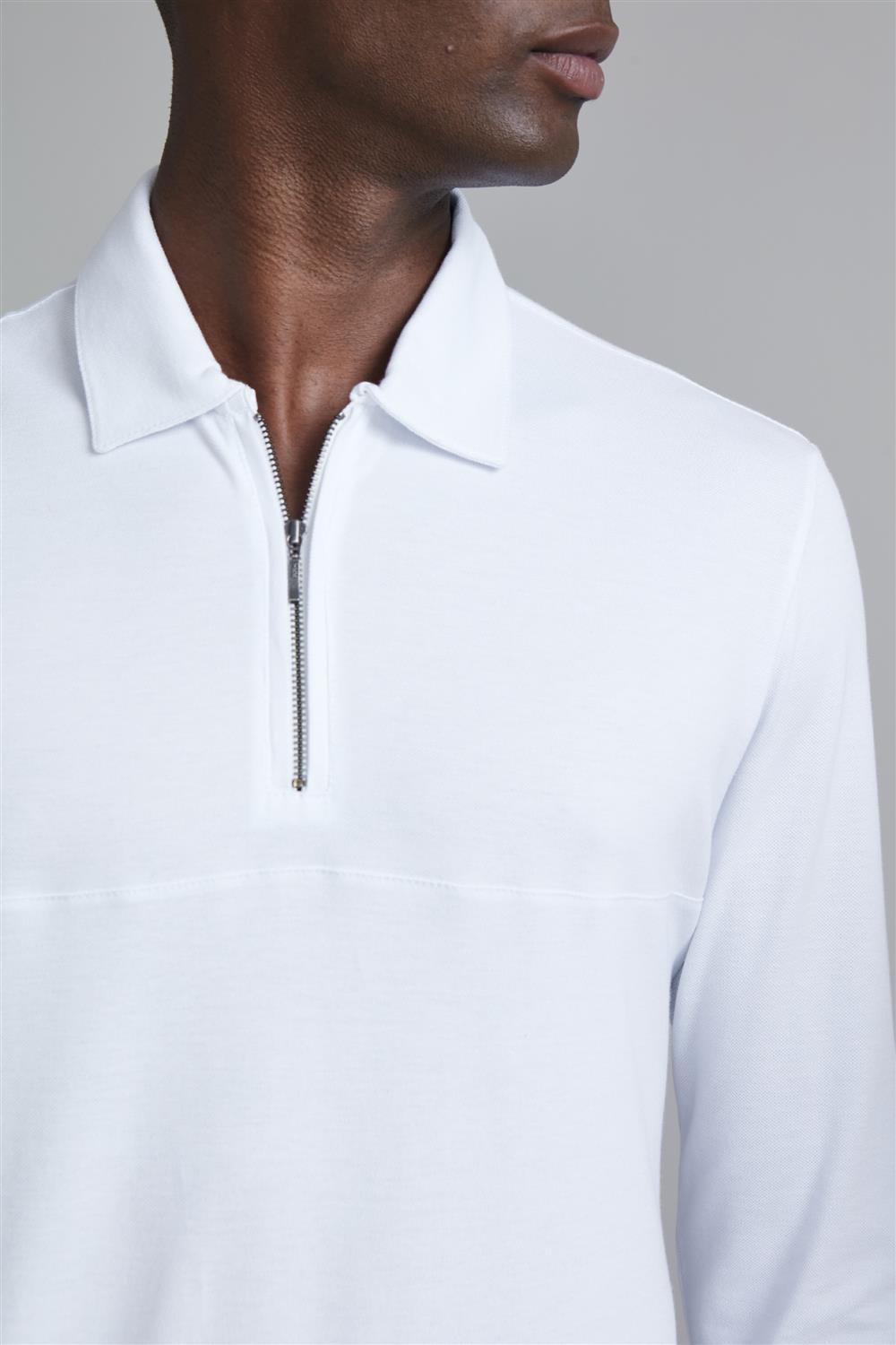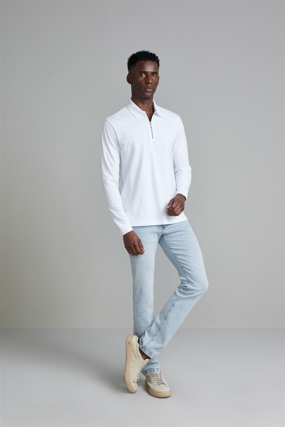 Camisa Polo Manga Longa com Zíper Piquet Comfort - Branco