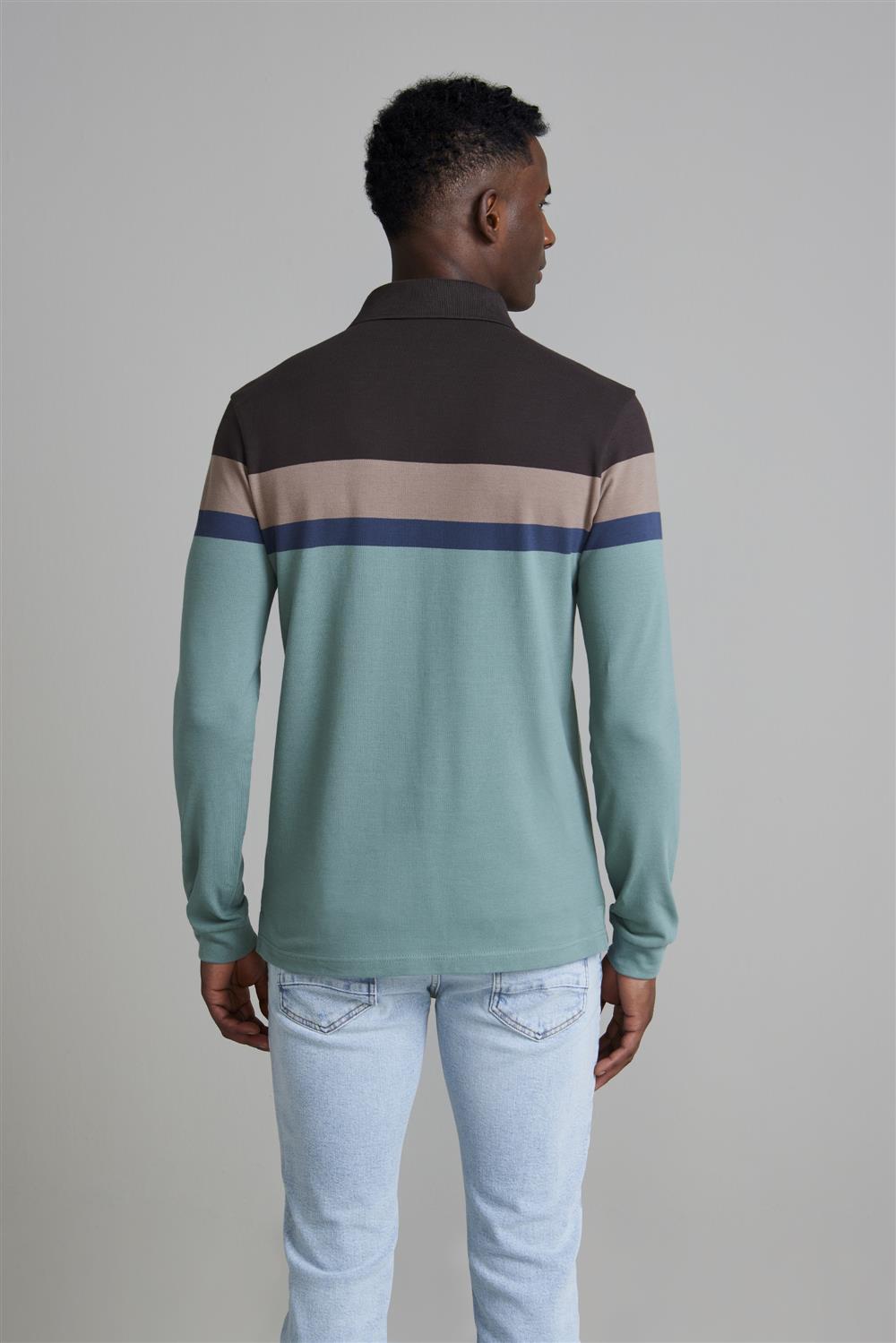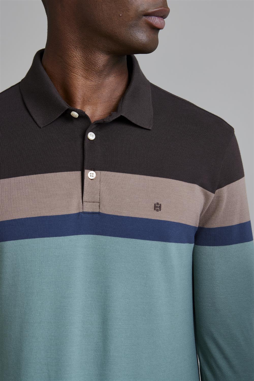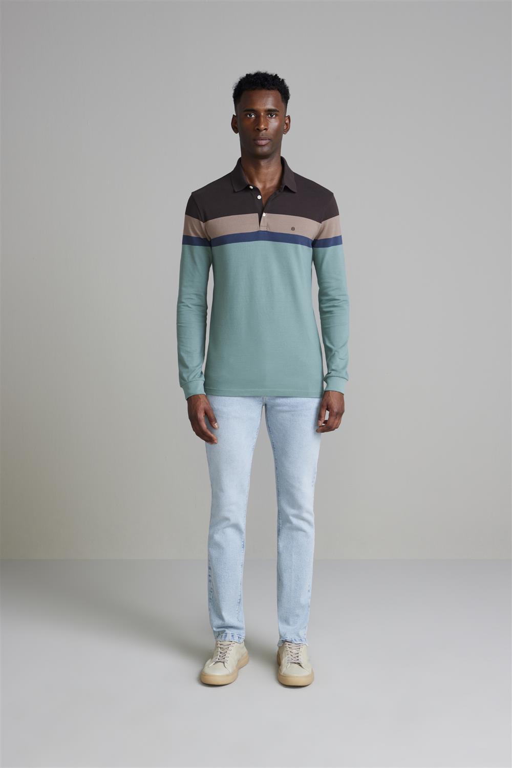 Camisa Polo Manga Longa Piquet Slim Fit - Marrom / Verde Malva