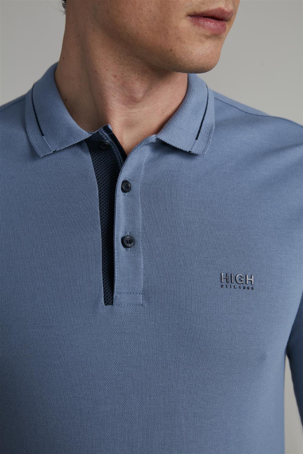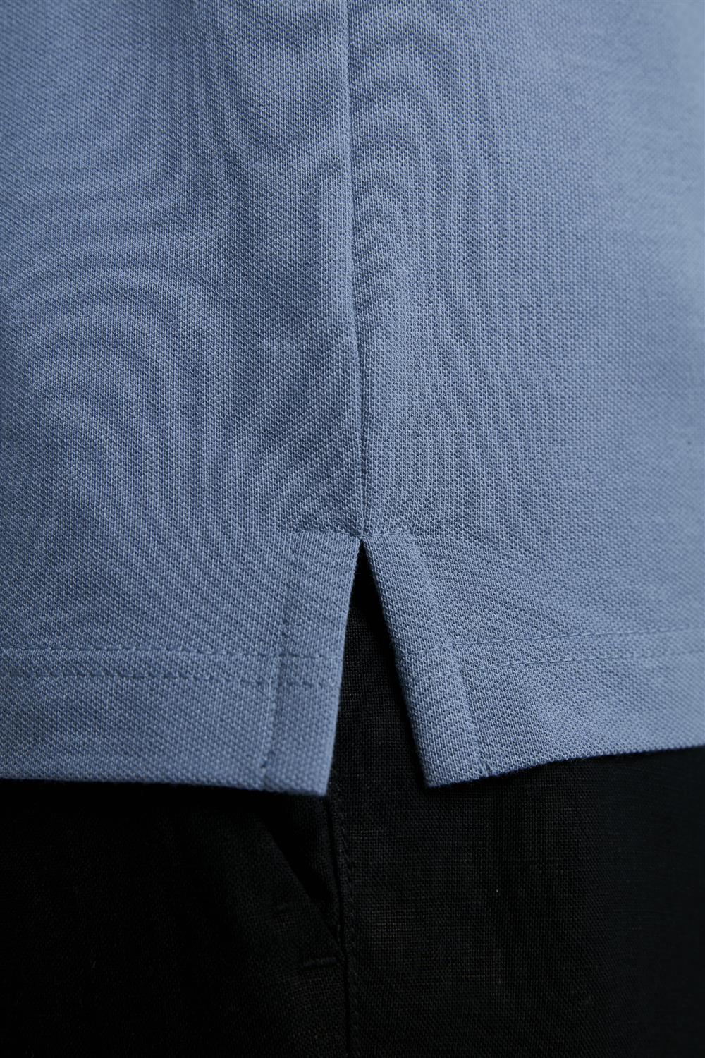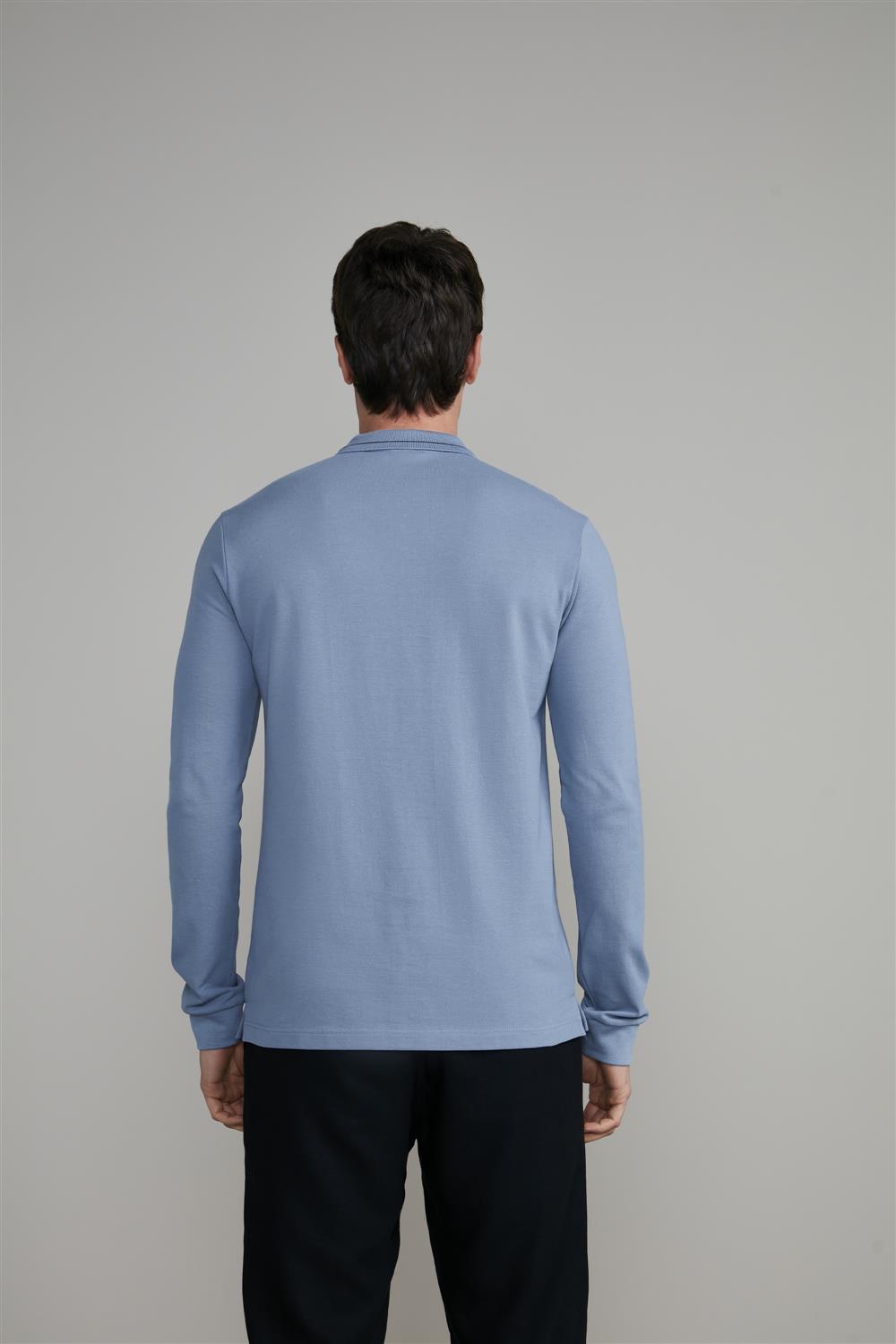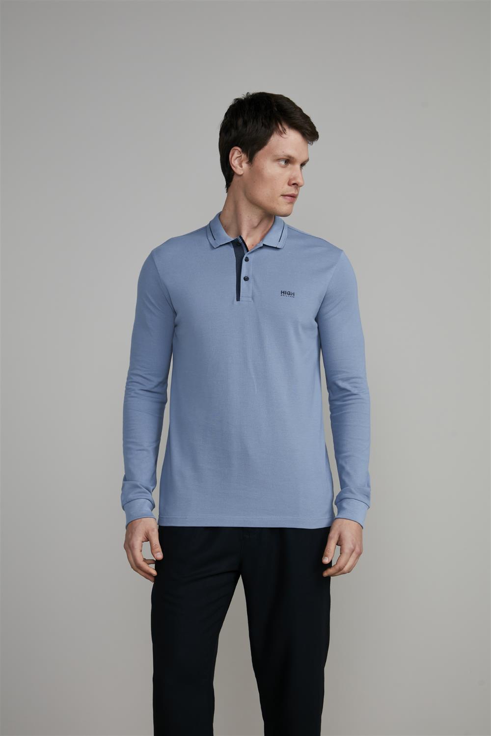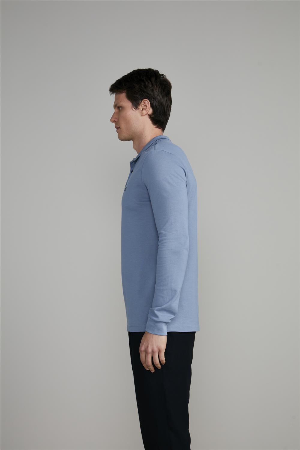 Camisa Polo Manga Longa Piquet Slim Fit - Azul Jeans