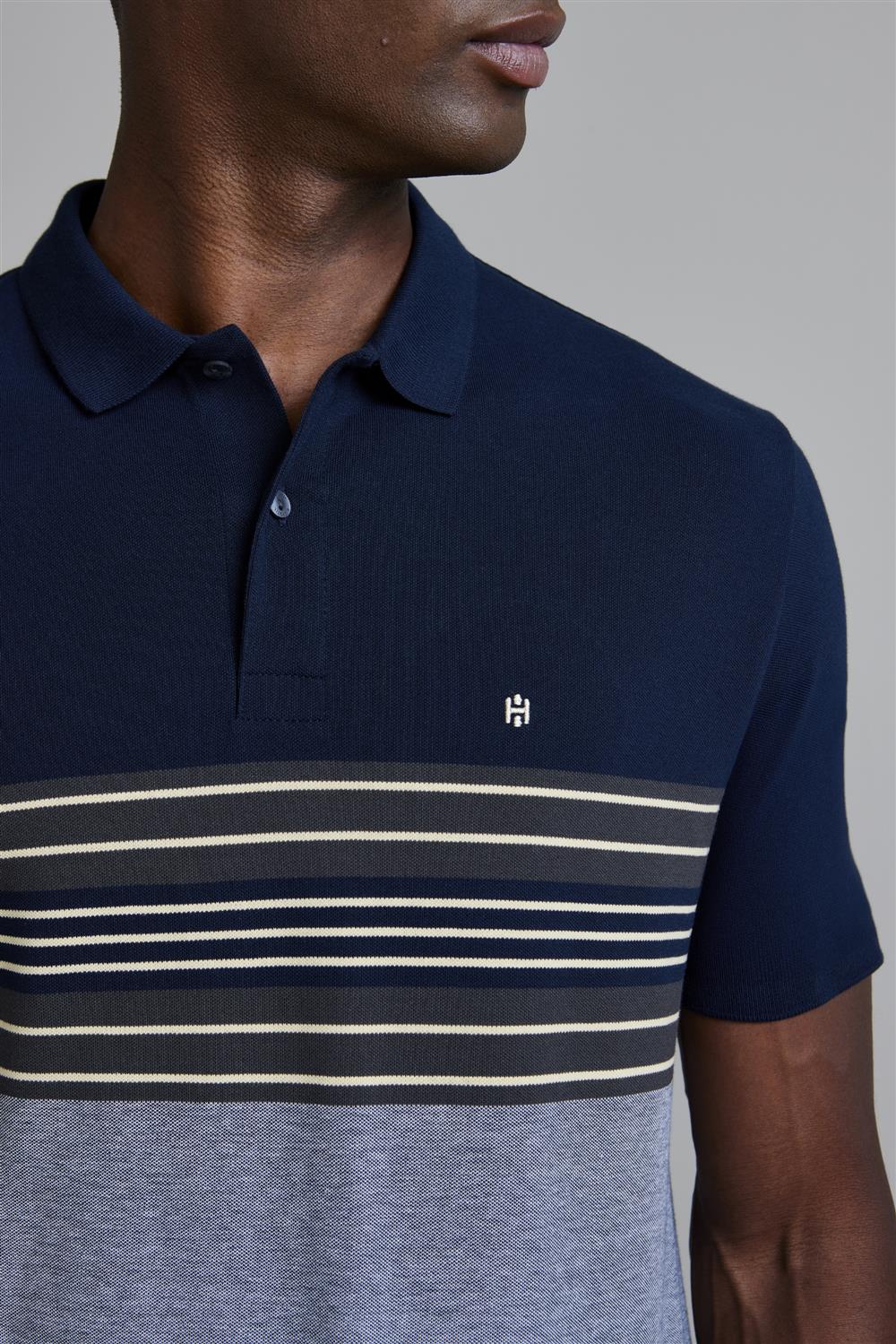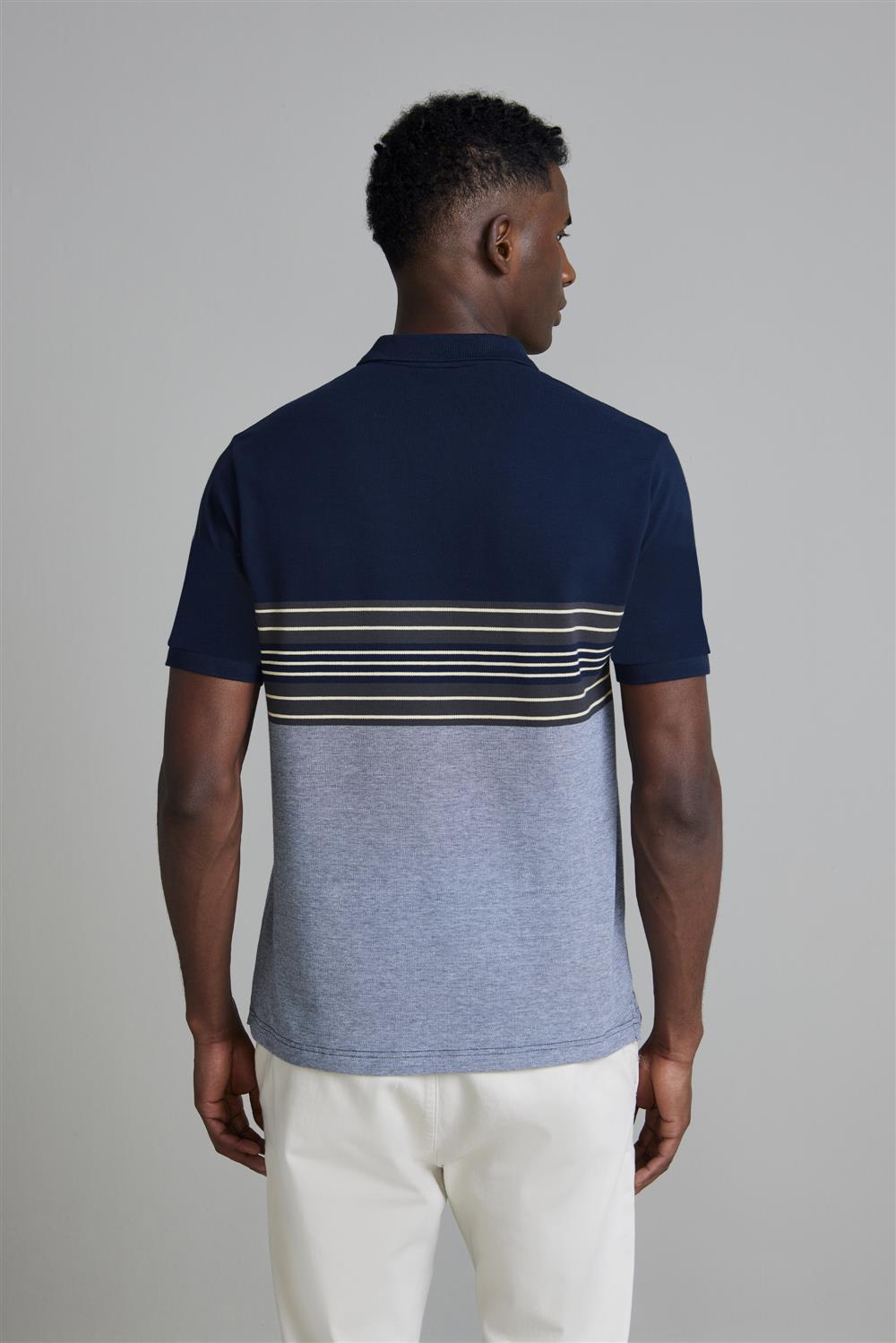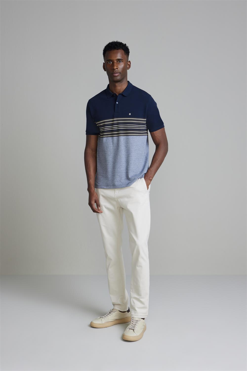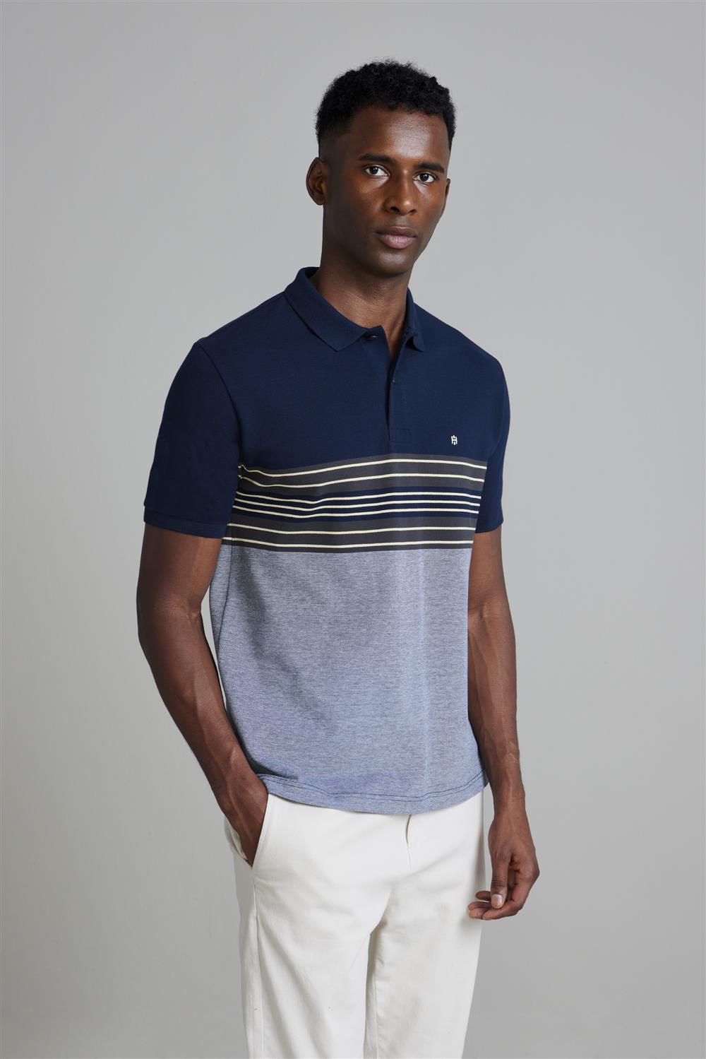 Camisa Polo Piquet Comfort - Azul Marinho / Marrom Amêndoa