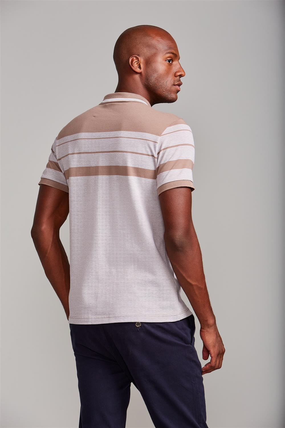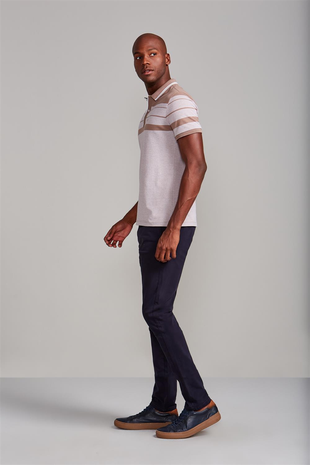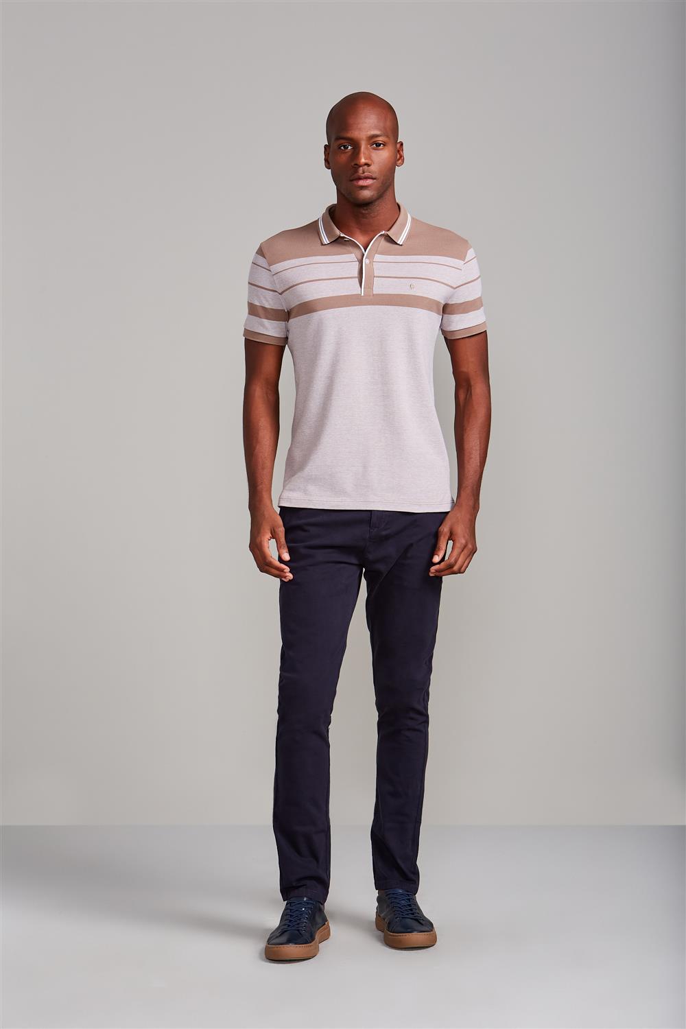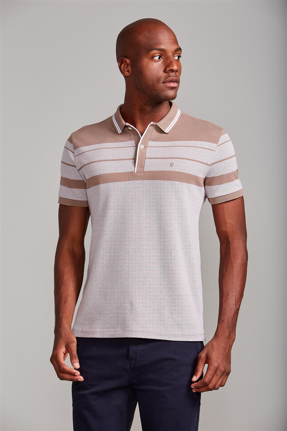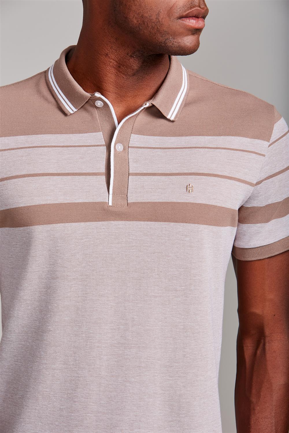 Camisa Polo Piquet Slim Fit - Marrom Castanho / Branco